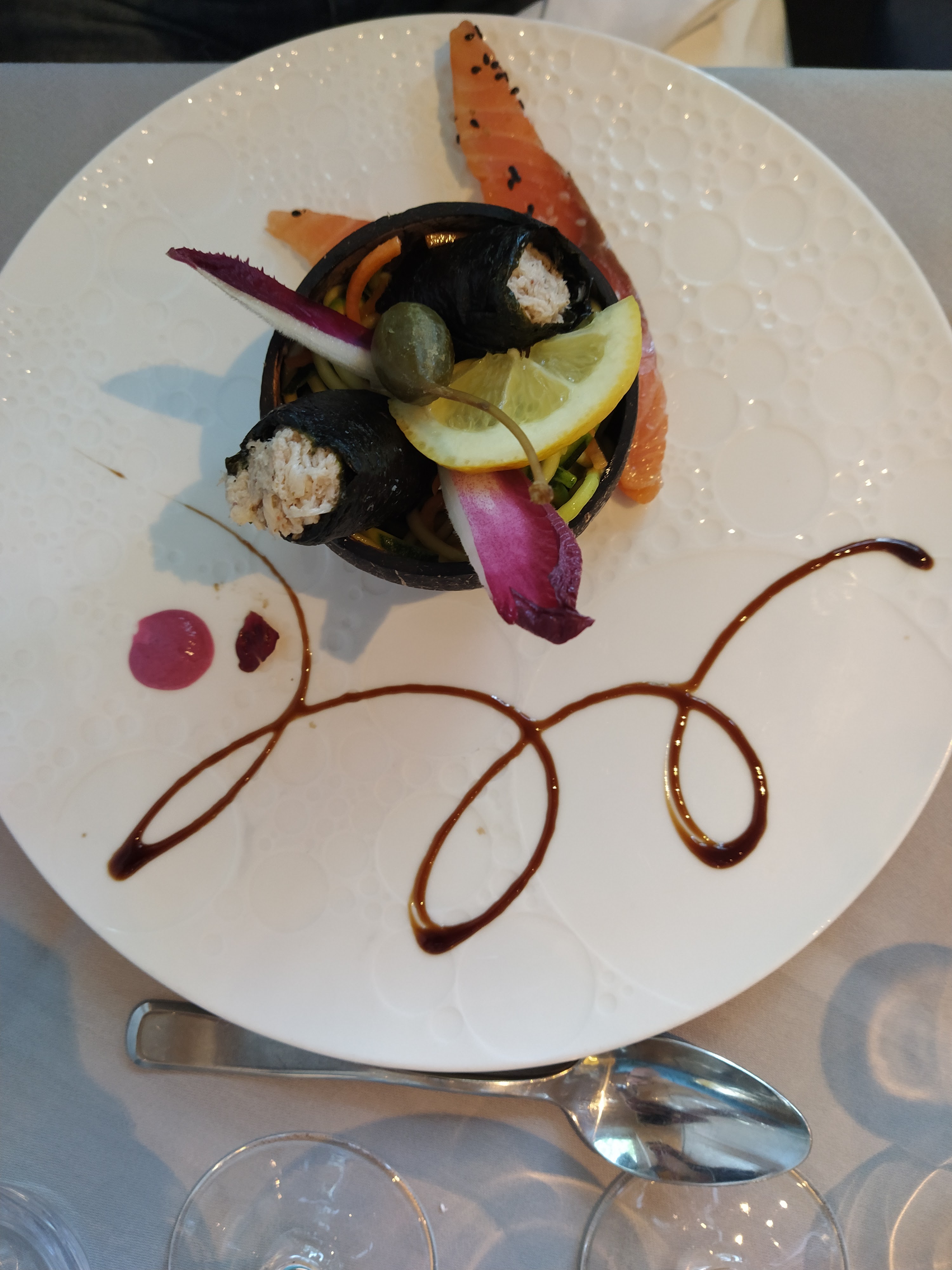 Veillez à bien annoncer la composition des mises en bouche. J'aurais pu mourir si j'avais mangé en premier la verrine annoncée comme velouté de pois cassés et artichauts (Nous étions 12 à table, nous avons tous et toutes entendu le même énoncé.) qui contenait aussi une moule -> aliment auquel je suis mortellement allergique. Au vu des prix de la carte, le service pourrait être plus soigné (par exemple poser des carafes d'eau sur la table).