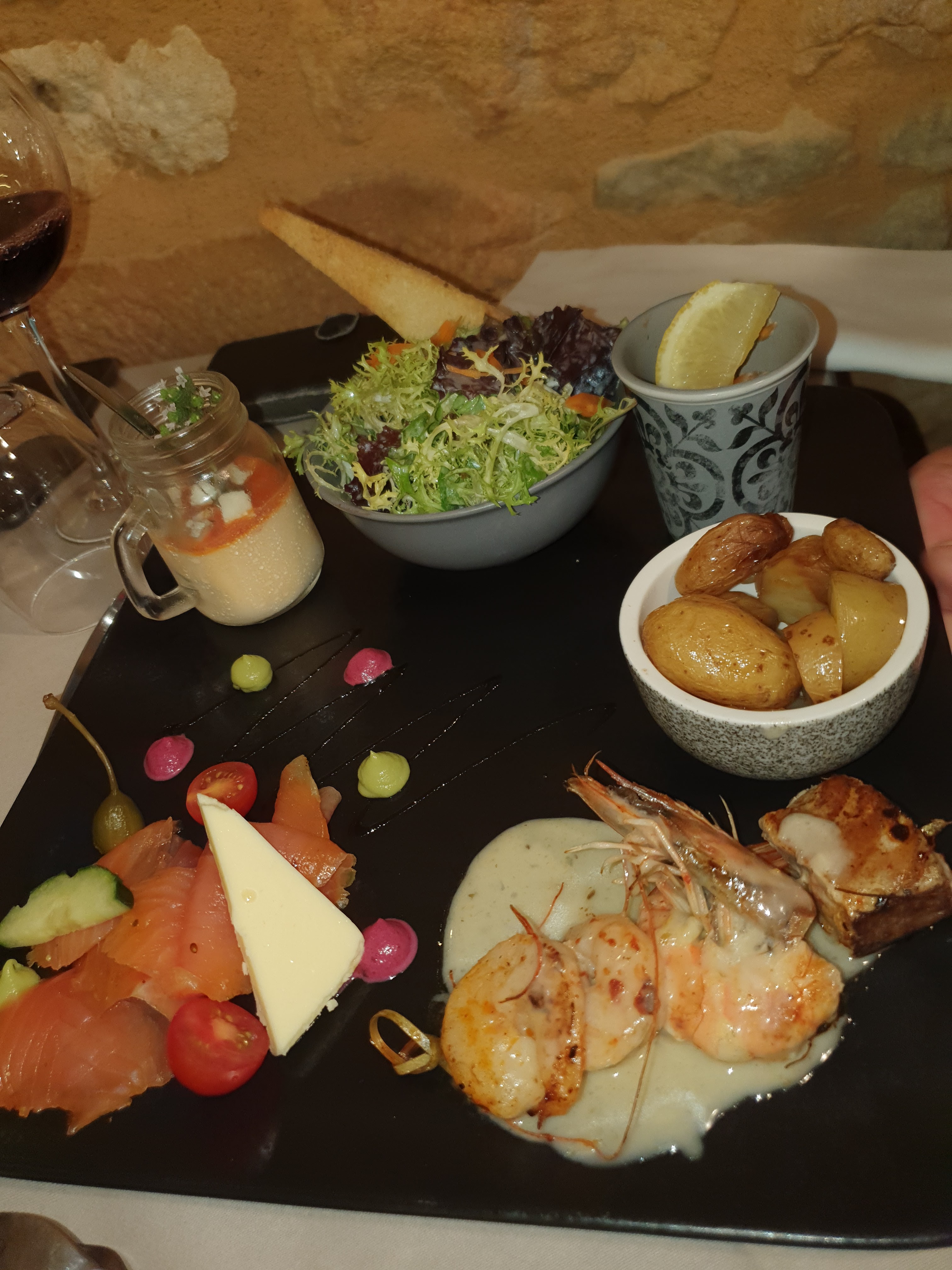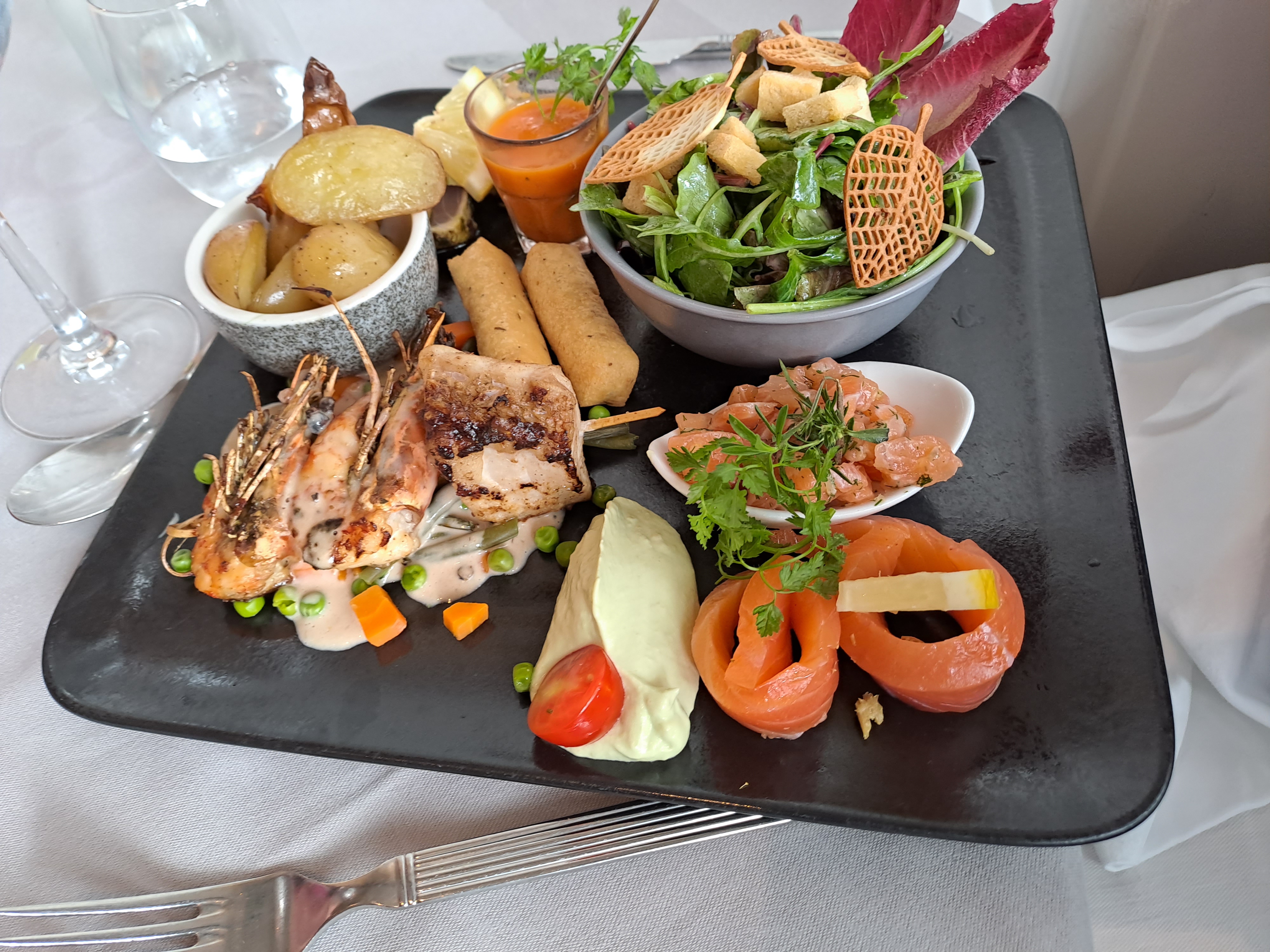Le cadre est très agréable surtout en terrasse. Nous avons pris les assiettes dégustation terre et mer. C'est très copieux et vraiment très bon ! Les desserts sont très gourmands aussi. Nous avons passé un très bon moment ! Je recommande fortement. Prends la carte up 😉