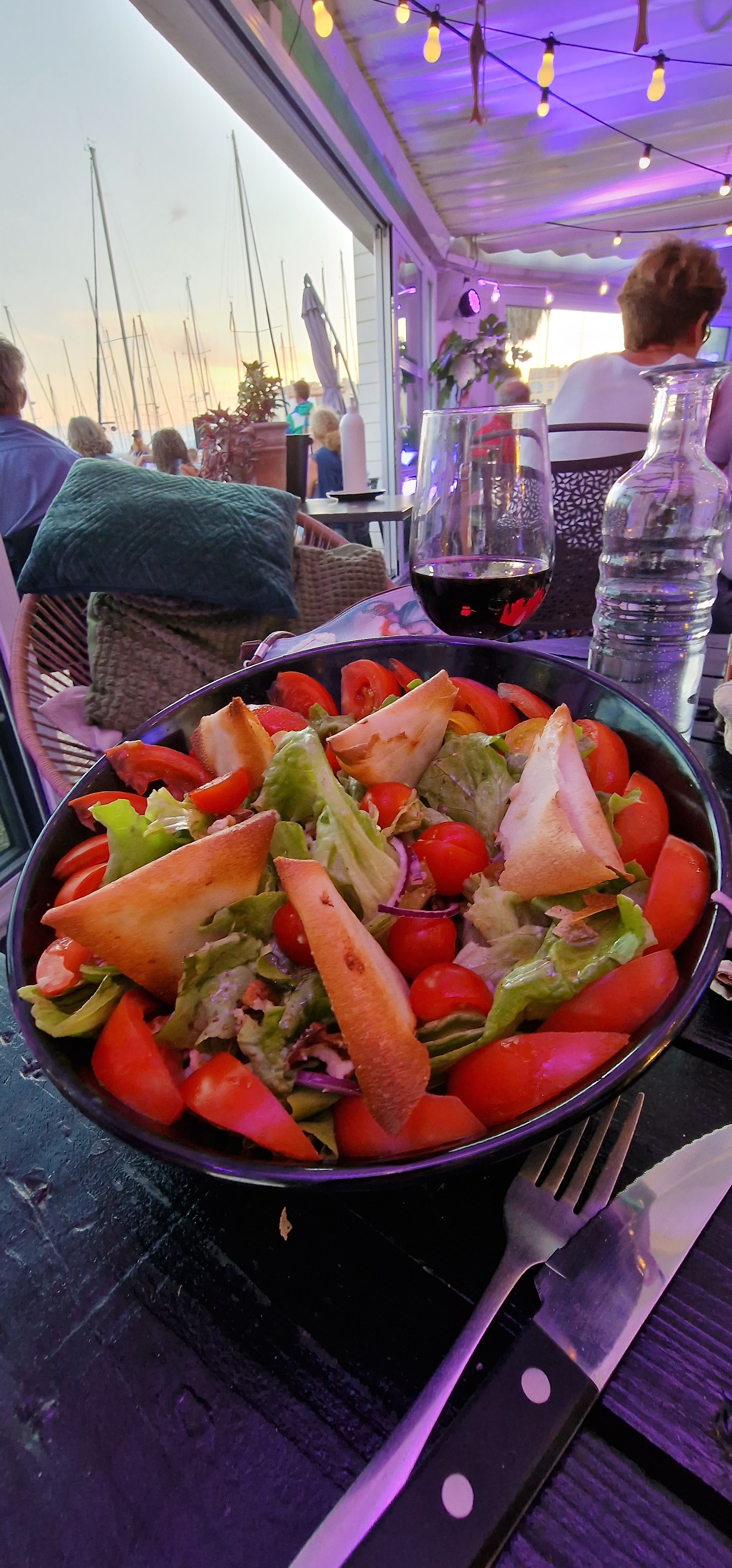 Le cadre est sympa: terrasse avec vue sur le port et ses bateaux. Service un peu long mais nous sommes en haute saison. Tapas bien relevés et gouteux. Les cocktails avec ou sans alcool sont bons.