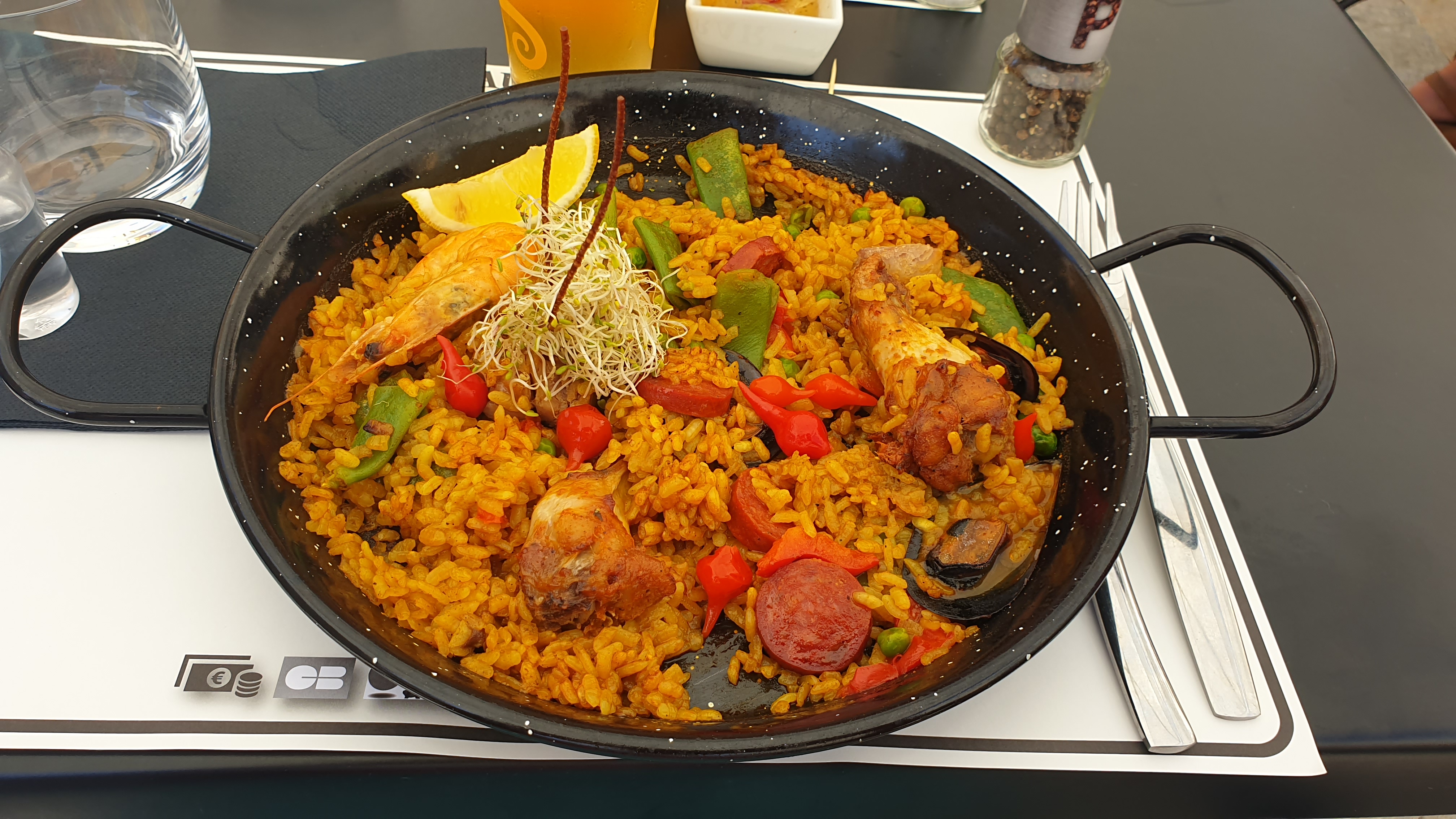 Accueil sympathique et souriant. Cadre agréable. Côté gastronomie, concernant la paella proposée au prix de 19€ : peut mieux faire. Trois moules, un ou deux petits morceaux de poulet et une malheureuse crevette. Même si la présentation du plat reste esthétique, pour ma part, je suis resté sur ma faim.