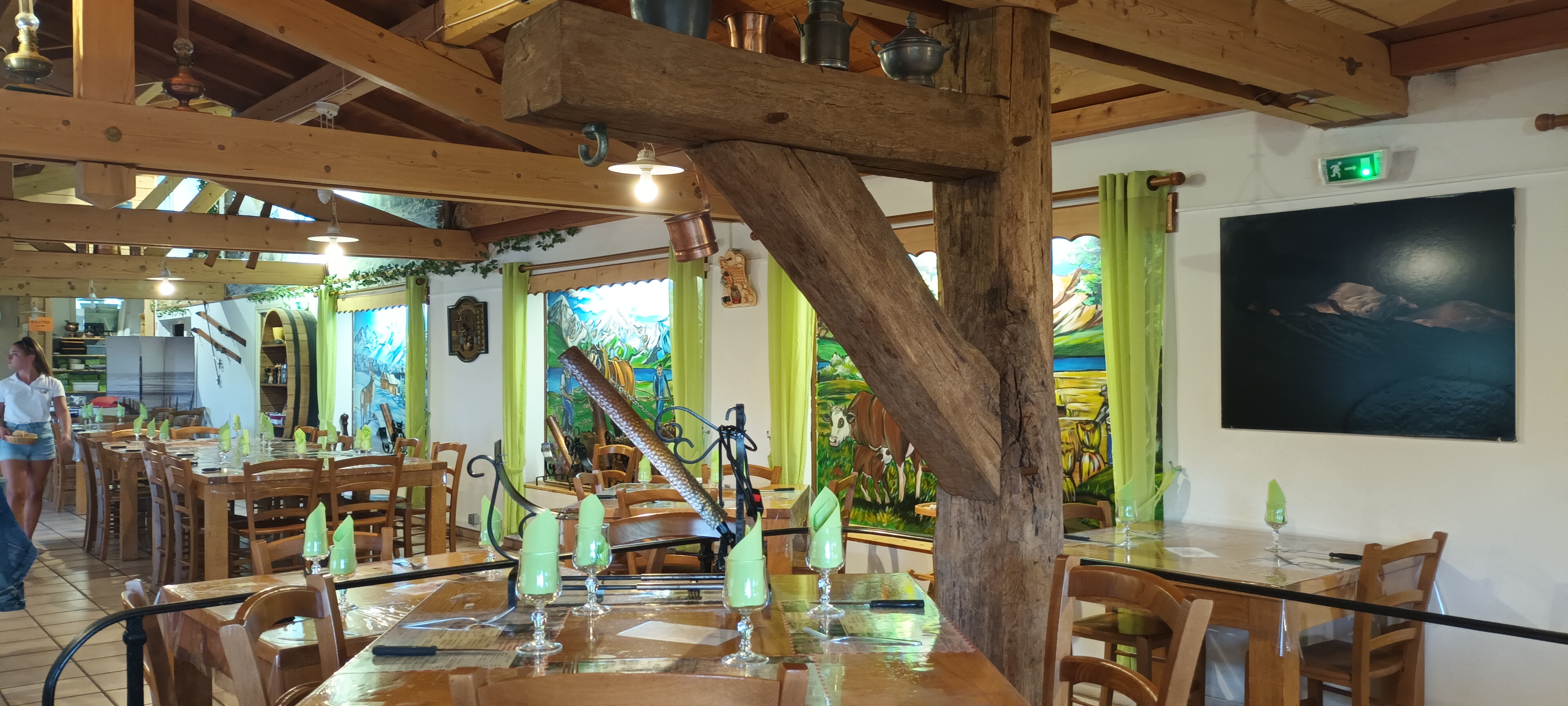 La ou on nous montre de belles photos a flanc de montagne et au bord du lac, le restaurant est dans un coin de verdure a coté d'un intermarché. Une seule personne gère tout, magasin,service cuisine..donc prestation longue... Après repas très bon