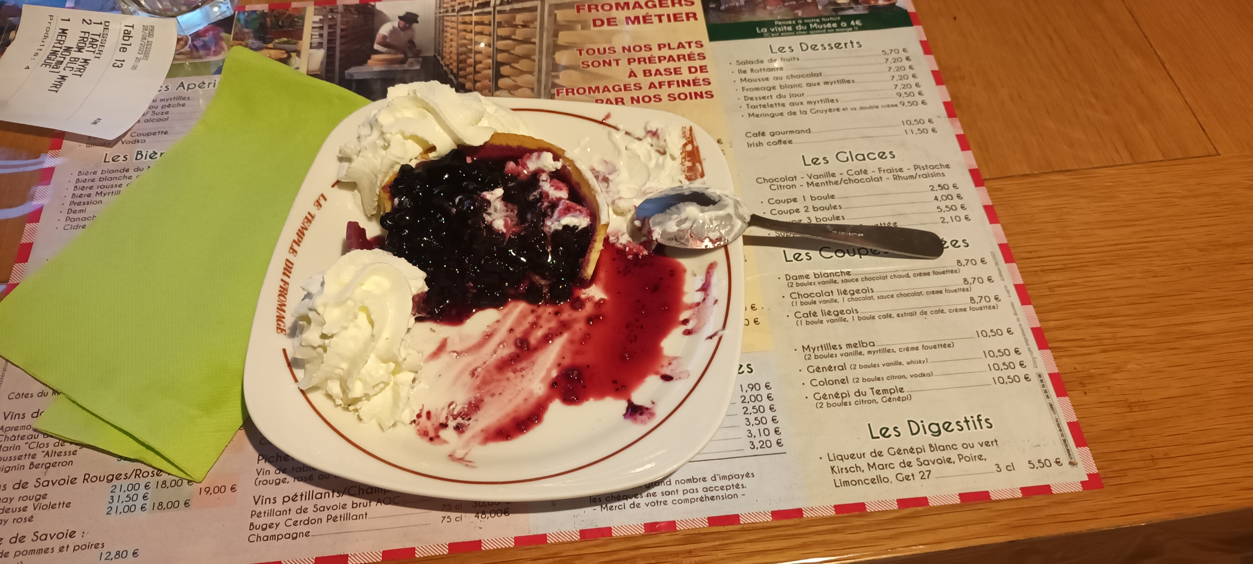 Toujours aussi bon 10 ans après excellent la fondue nous avons pris de dessert 1 dame blanche très bonne et 1 café liégeois excellent demain nous allons acheter du fromage à la boutique