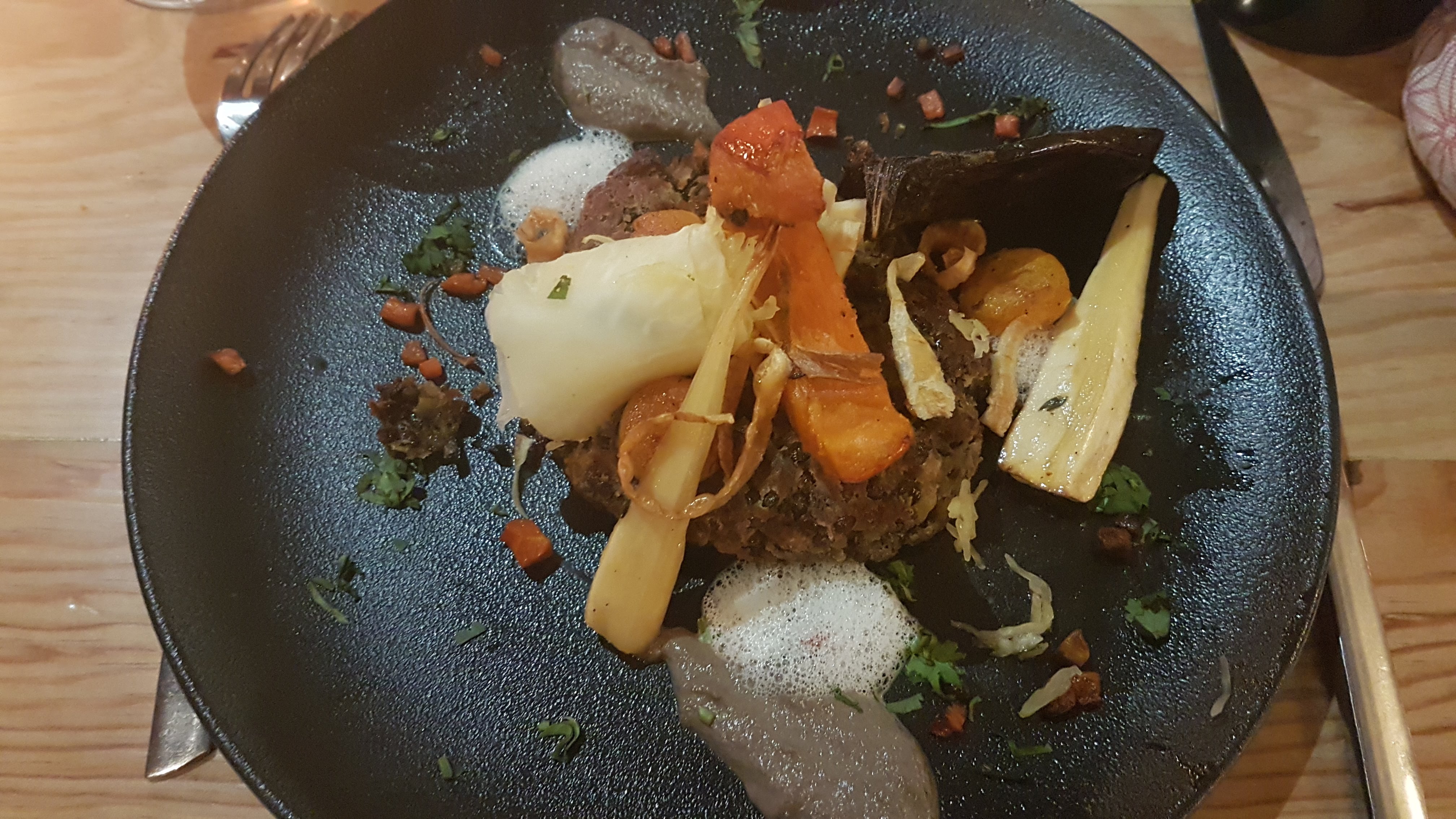 Notre fils a eu les larmes aux yeux à sa première bouchée de son filet de bœuf avec la crème de châtaigne et que dire de la purée fumée. Nous nous sommes régalés tous les 3 .