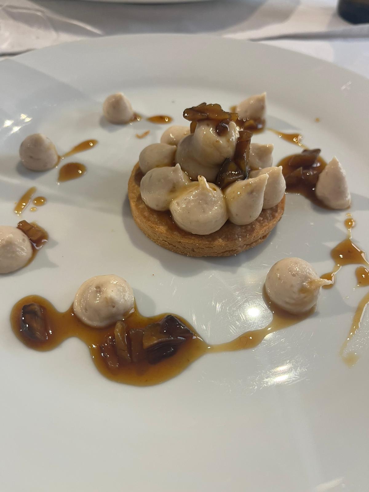 Nourriture incroyable. Un charmant couple offre un service de qualité supérieure, se sent très personnel et spécial, et à un prix raisonnable et de haute qualité. J'ai facilement payé 4 fois plus pour une qualité de nourriture et de service similaire (sans la touche personnelle des propriétaires) à Londres. Cuisine raffinée discrète (en termes de prix). Méfiez-vous de la destination Google Maps. C'est éteint et vous emmène à travers la ville et devant le restaurant. Le restaurant fait partie de la vieille ville et se trouve à peu près au centre (en face d'un café/bar très animé), très facile à manquer. Je recommanderais d'appeler à l'avance
