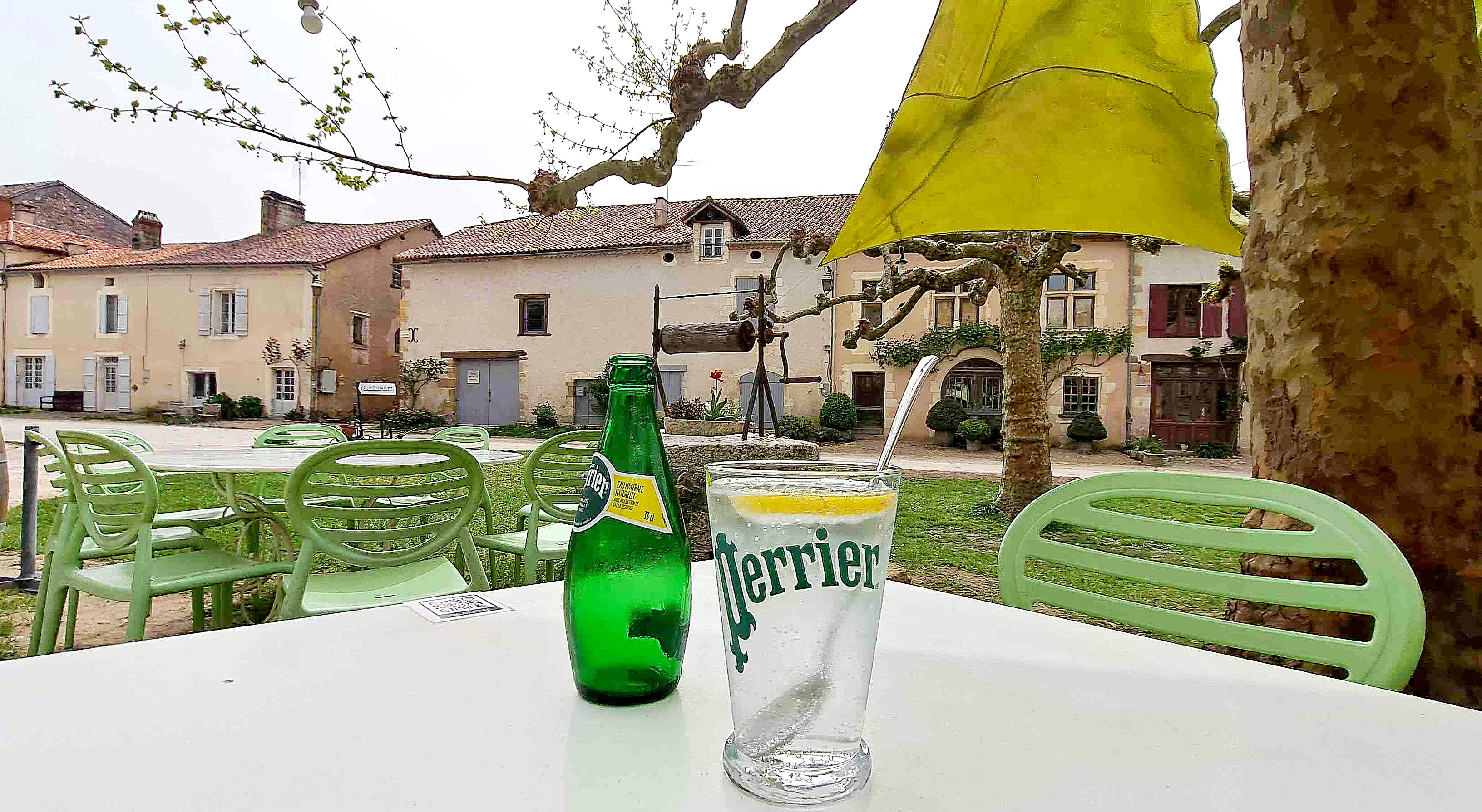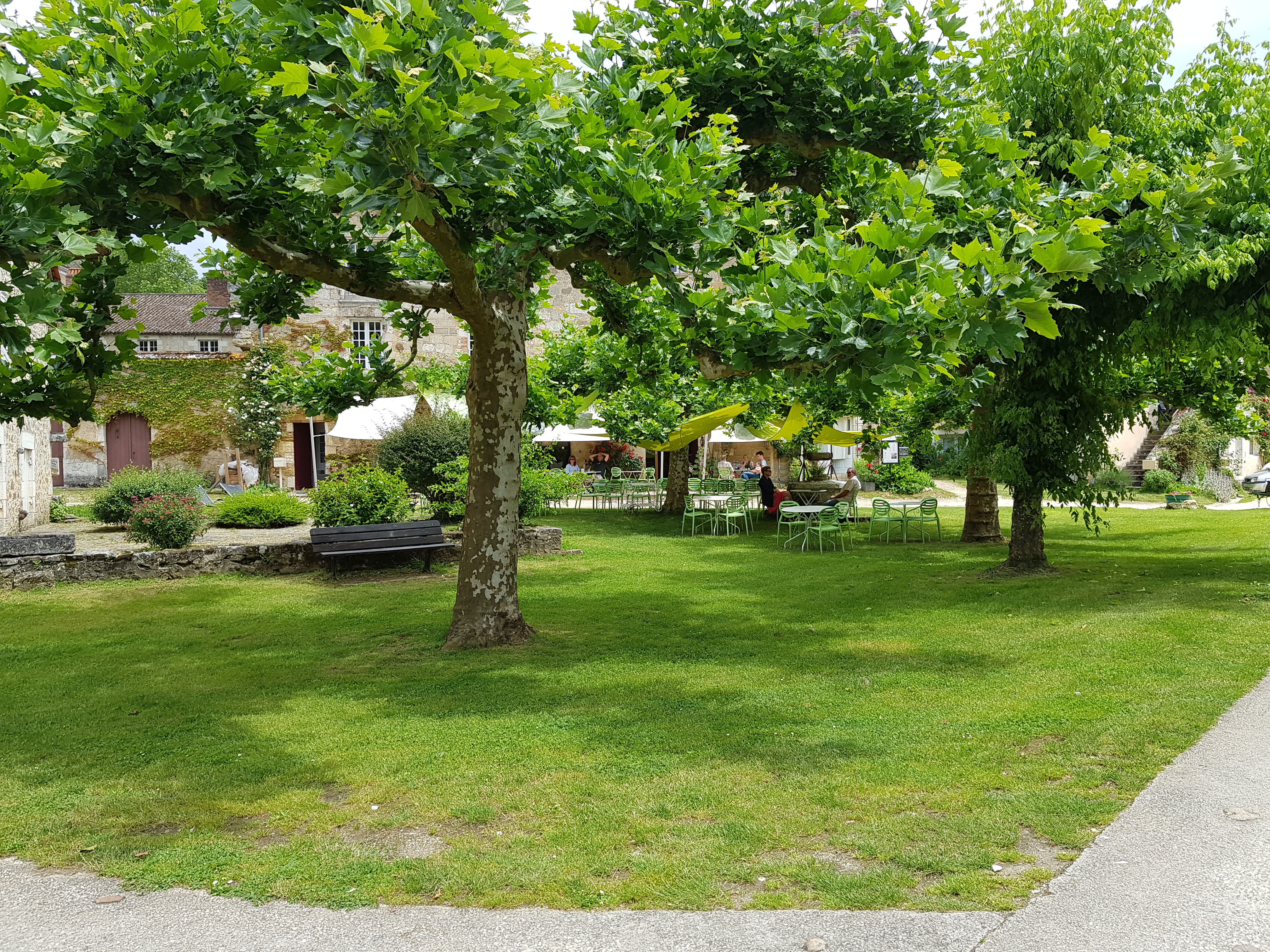Bon repas sur une petite place ombragée dans un très beau village.