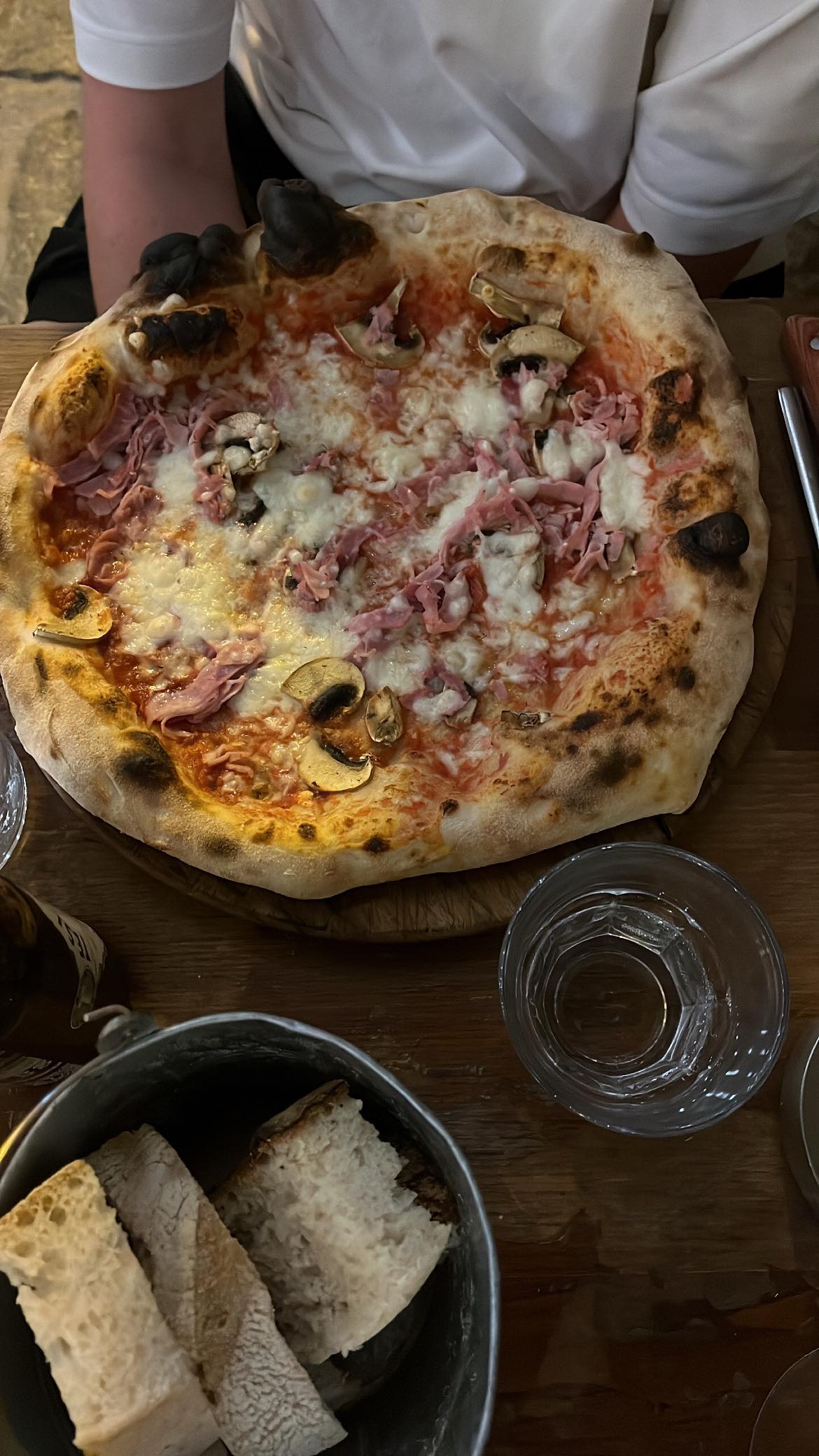 Pizza très bonne, serveurs très sympa, vin trop cher Pour une pizzeria !! 🤑🤑table trop proche par apport au covid.et beaucoup trop bruyants