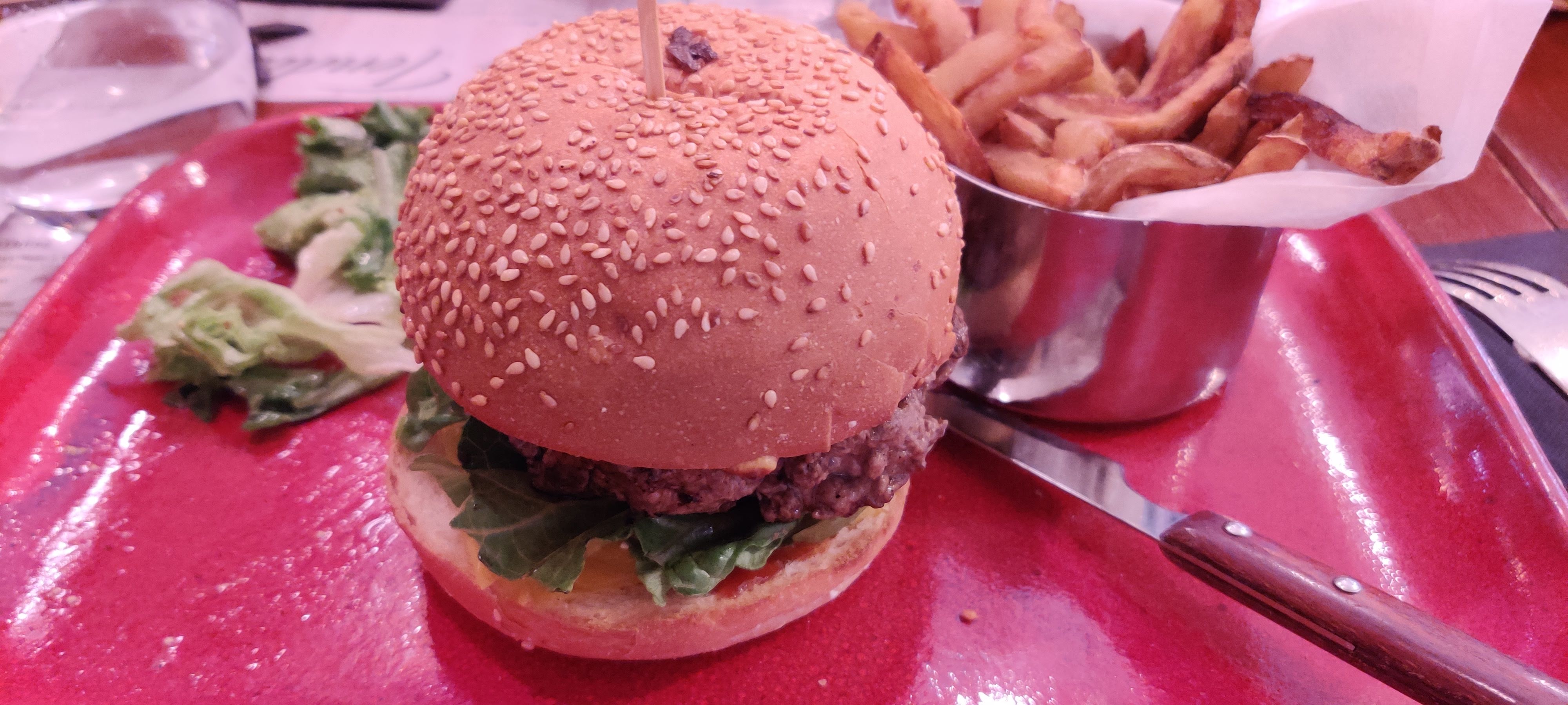 Burger demandé saignant et servi bien cuit, la serveuse nous a complètement oublié après nous avoir débarrasser nos plats, nous a jamais demandé si nous désirions autre chose et nous a pratiquement demandé de partir. Dommage tout avait bien commencé, malgré la cuisson non désirée, la nourriture était très bonne, mais la pression du monde qui arrivait l'a complètement déstabilisée.