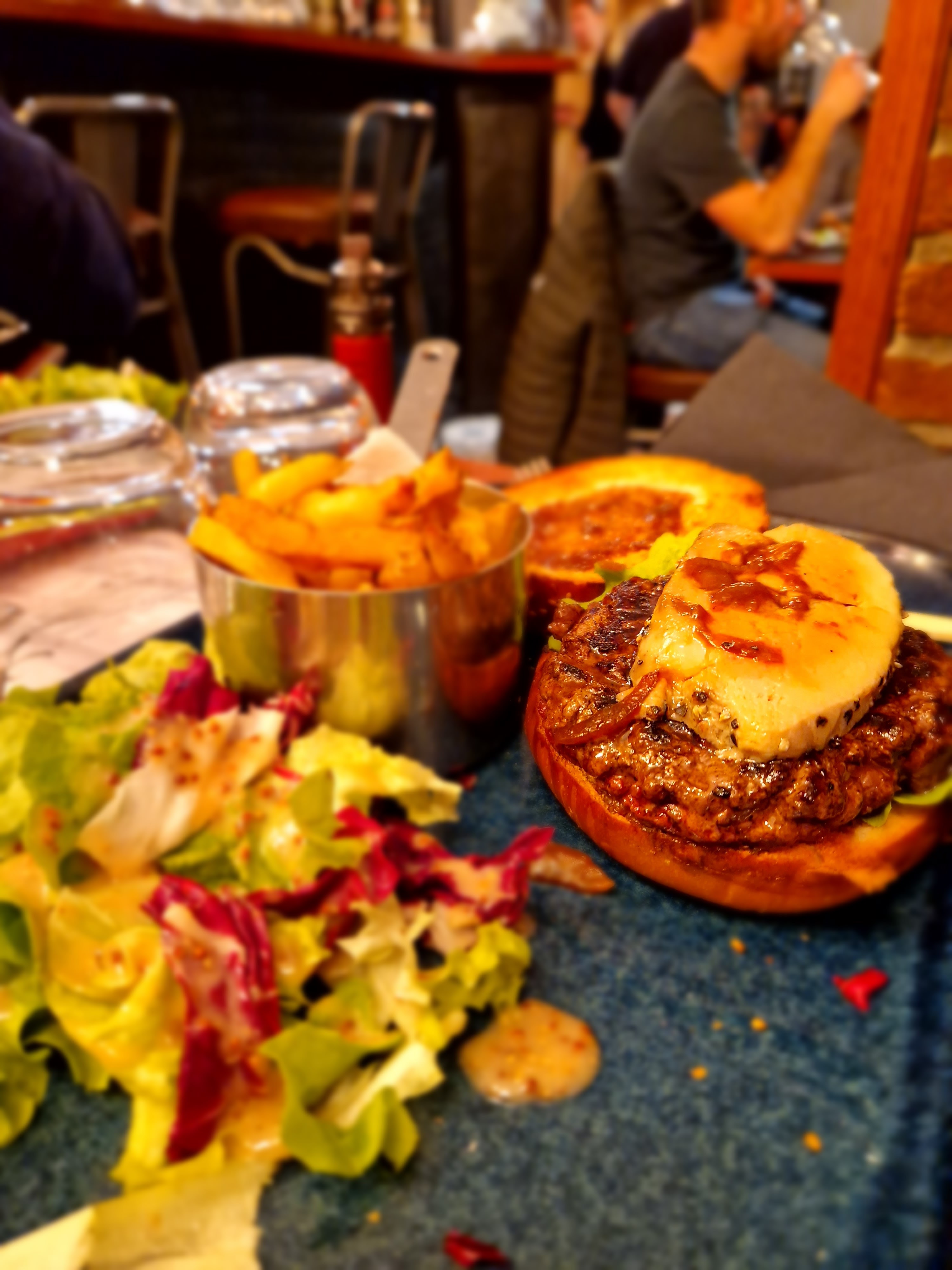 Très bon repas, il manquait quelque chose au burger au brie selon moi (peut être qu il soit plus fondu ou une sauce aux oignons) mais j ai pu goûter la bavette de mon ami avec sa sauce oignons qui était très bonne. Les frites étaient top, les desserts aussi (très bonnes glace au chocolat et crème brûlée). Je ne manquerai pas de revenir pour goûter les autres plats de la carte.