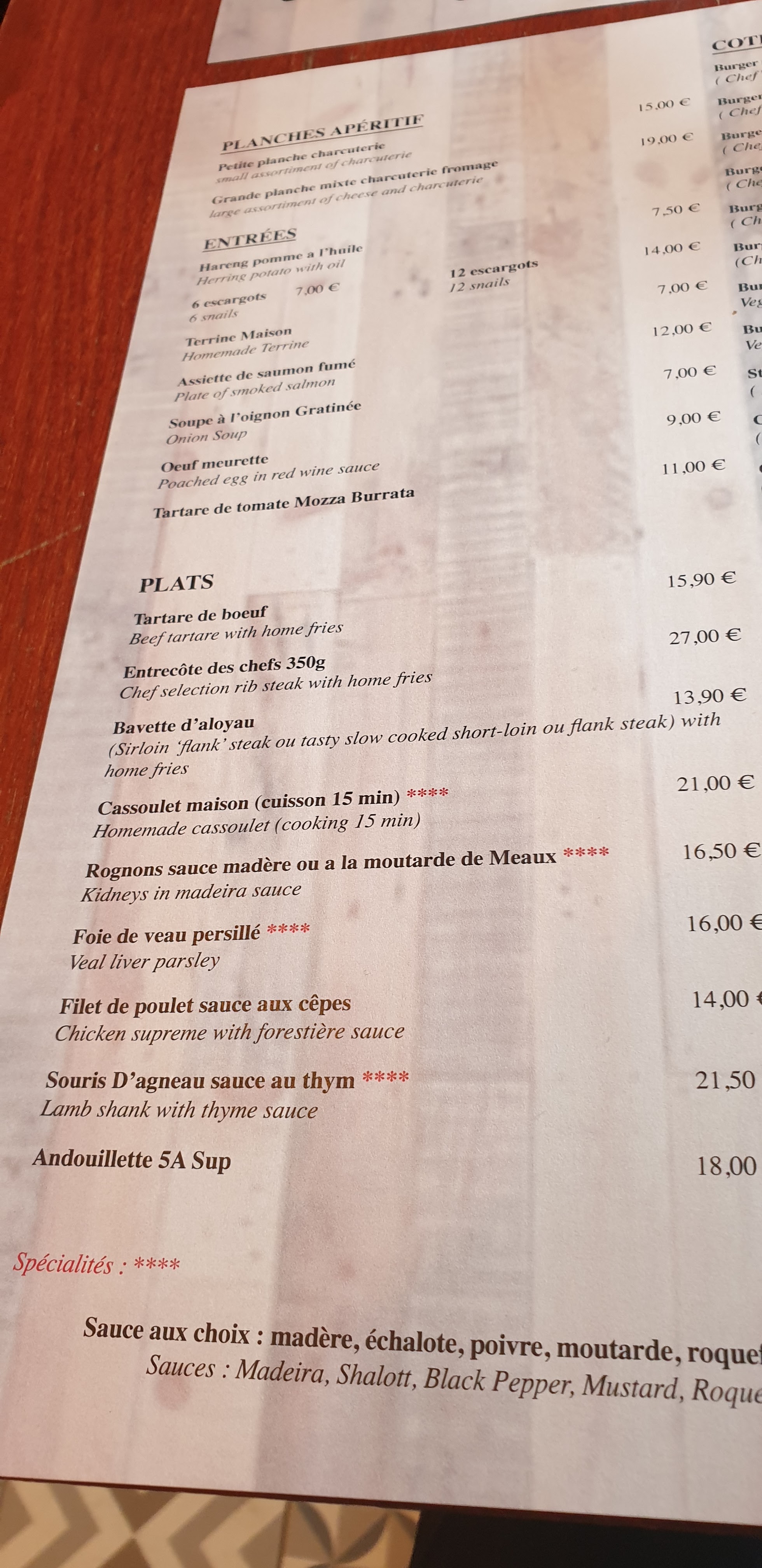On y est allé suivant les commentaires et malheureusement nous sommes très déçus 27 € l'entrecôte quasiment immangeable(photo jointes) on l'a signalé mais ça n'a rien changé digne des grands restaurants!!