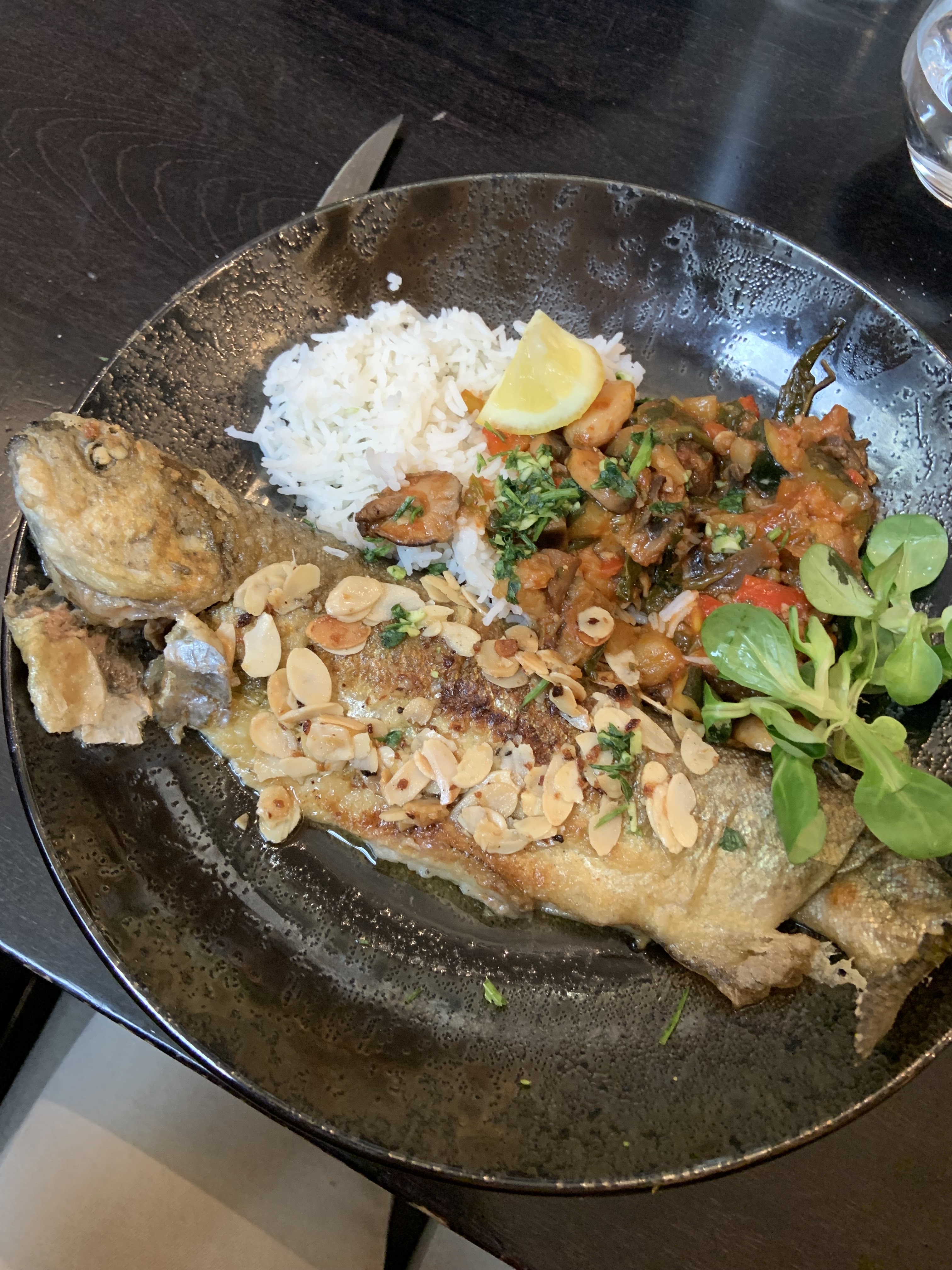 J ai deguste une paella 🥘 excellente Et en entrée des couteaux à la plancha mariné sauce gingembre délicieux 😋