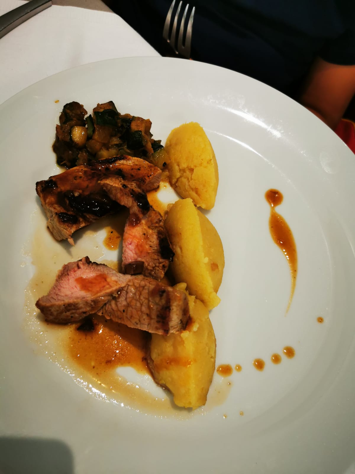 Plat principal excellent, l'entrée aurait pu être intéressante mais les courgettes sont relativement insipides et malheureusement la sauce l'était aussi .Dessert peut mieux faire mais le rapport coût prestation reste positif.