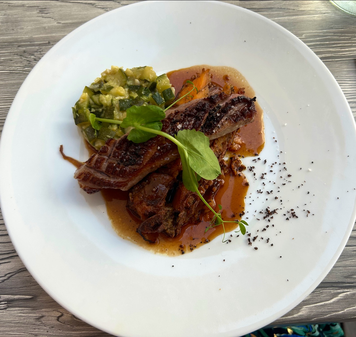 Un service efficace et avenant, des mets délicieux un cadre et une ambiance sympa un vin divin et une excellente soirée en amoureux vacanciers malgré le monde et l’affluence. De notre côté on ne peut que recommander ce restaurant.