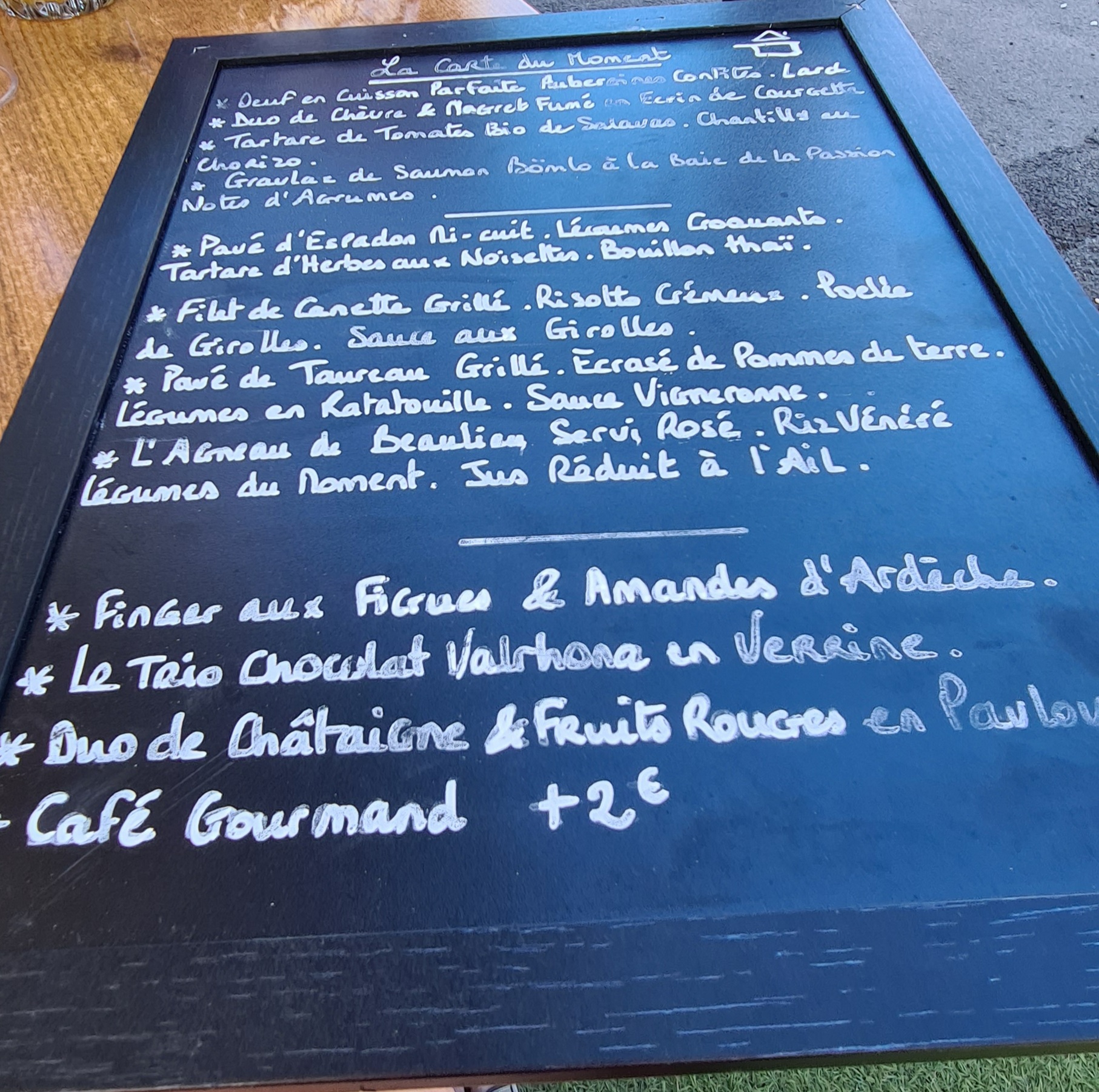 Nous sommes en vacances. Nous avons choisi ce restaurant au hasard et parce que la carte nous donnait envie. Nous ne sommes pas déçus. Les plats sont excellents. Les desserts on en remangerait. Nous recommandons fortement. Merci à la cheffe et à la pâtissière.