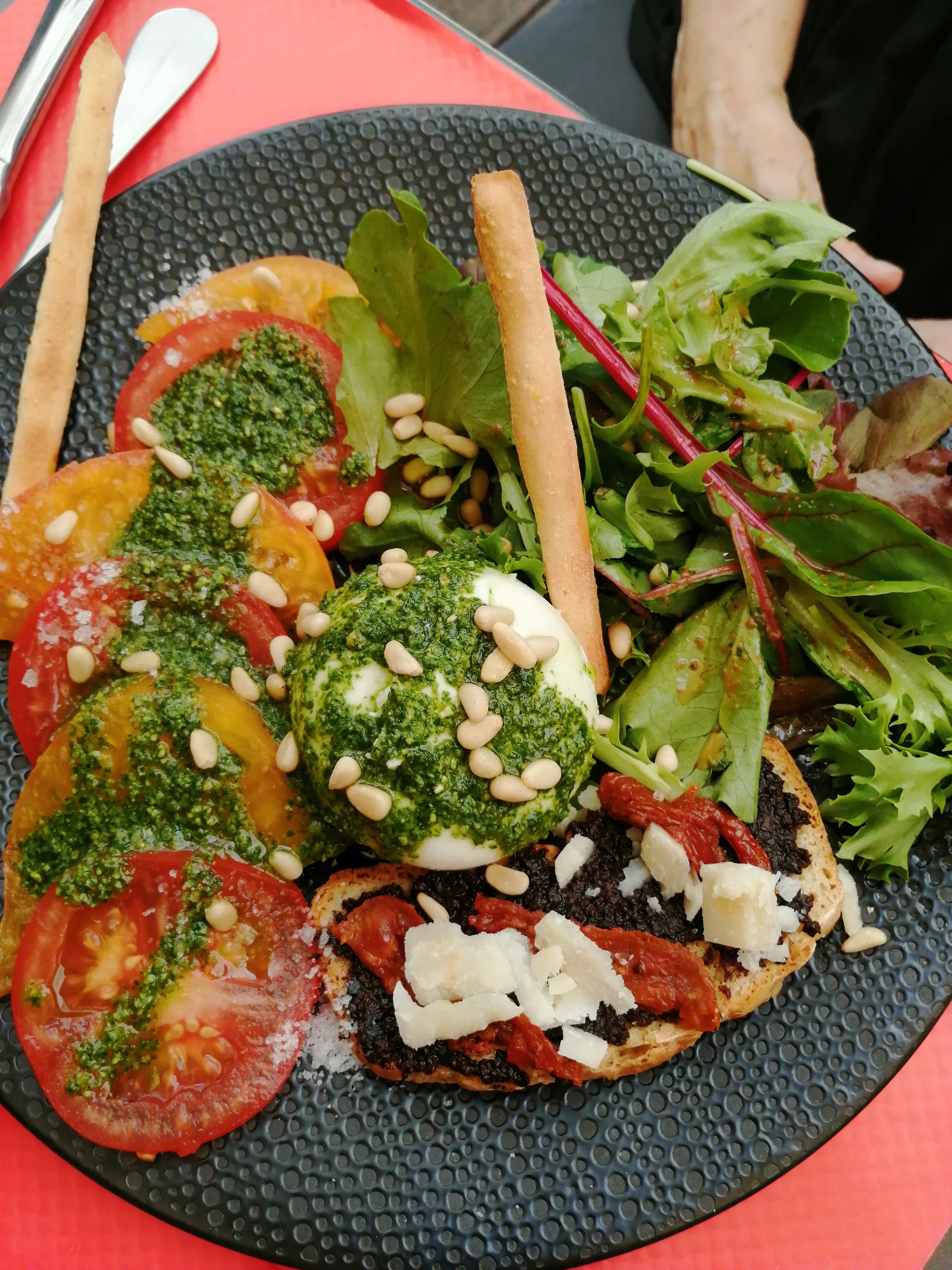 Joli petit restaurant dans un recoin du village, au calme. Une belle et bonne assiette tomates, mozzarella buffala, tartine tapenade, salade. Je recommande. Burger magret de canard / foie gras un peu petit pour le prix mais très bon.