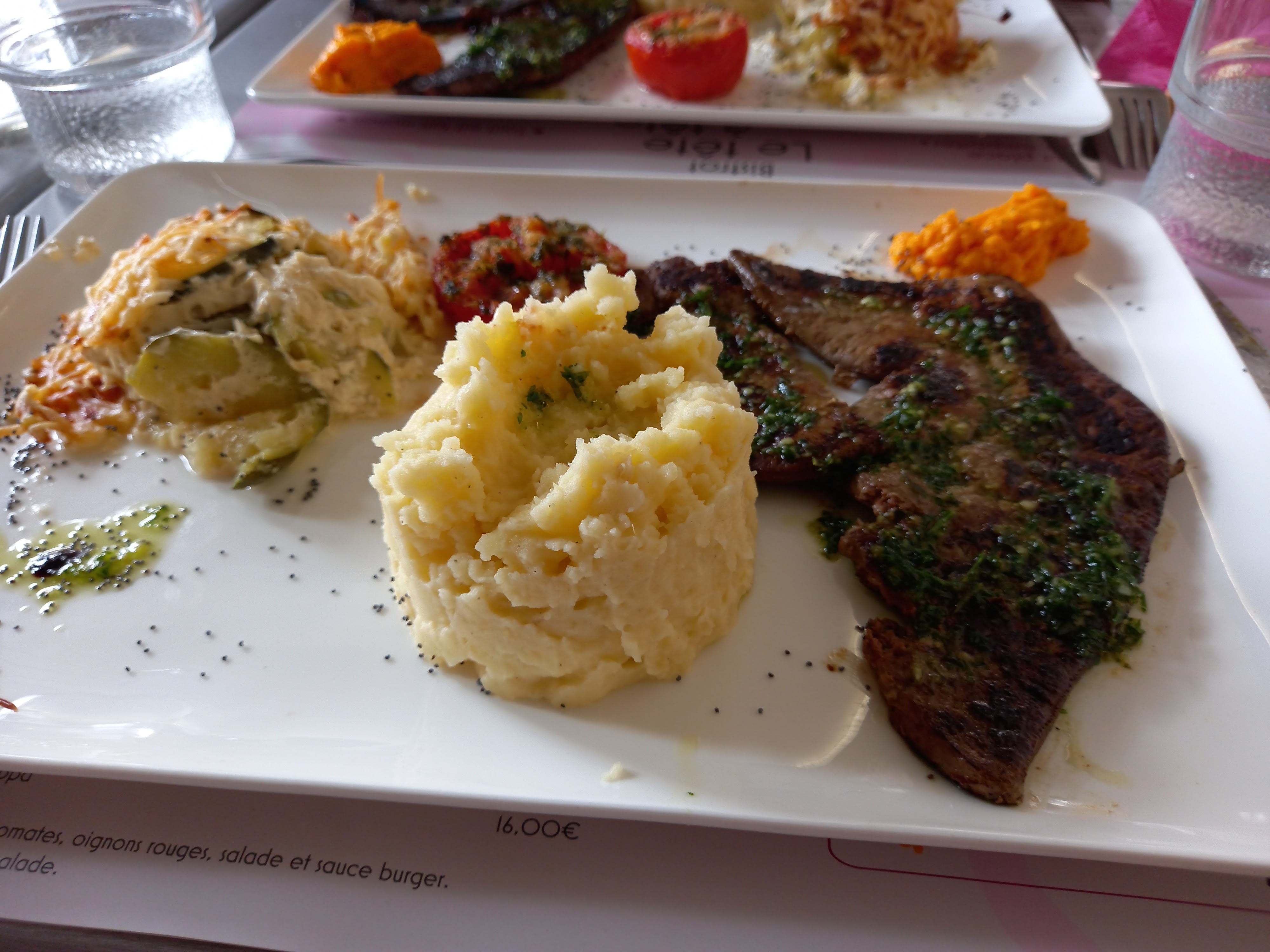 Tout était très bon (entrecôte, sole, moules gratinées et frites) et bien présenté. Simple petite critique sur les moules que j'ai trouvé un petit peu trop grasse et servis avec pas assez de frite (juste un peu plus ce serai parfait) Le service et rapide et les serveuses très gentilles.