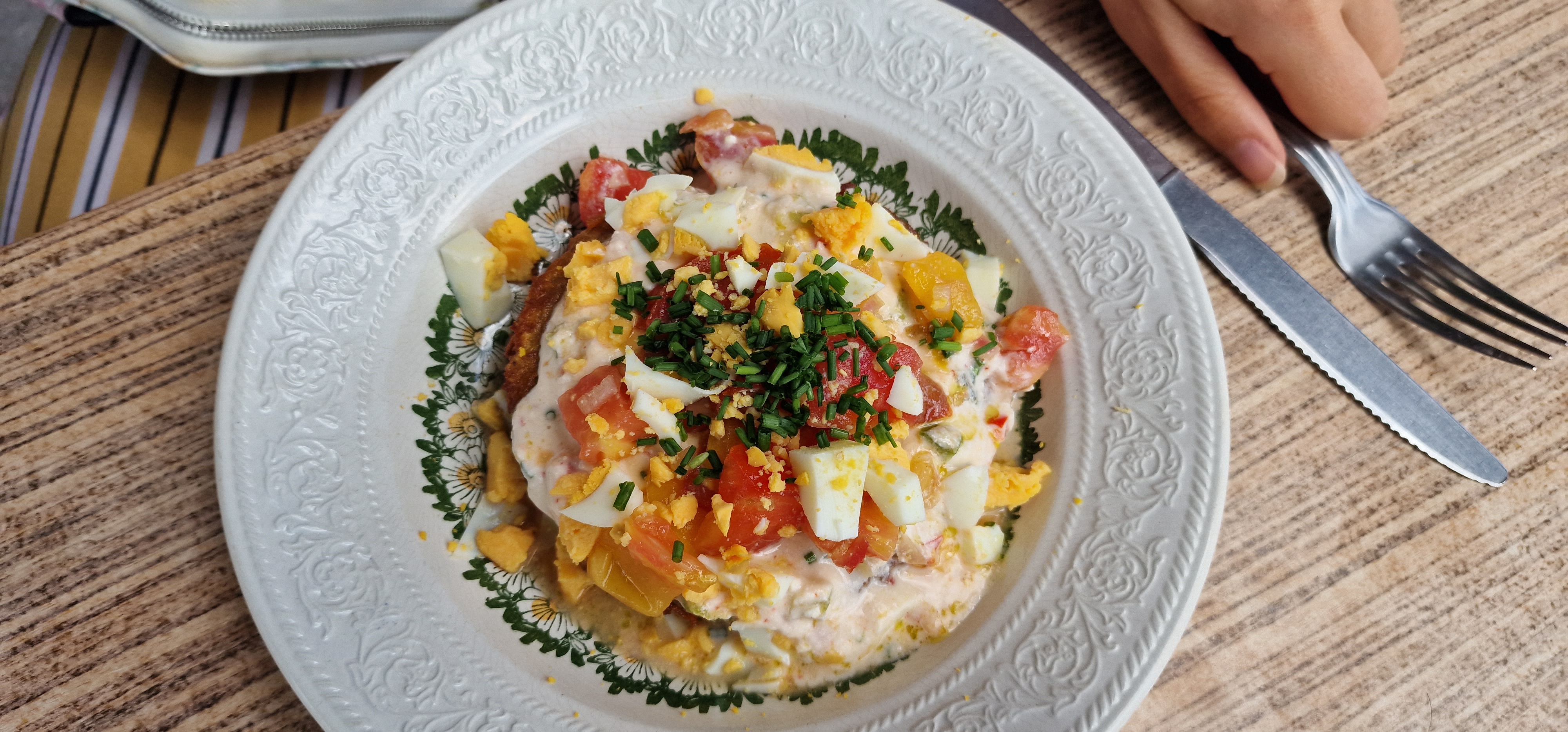Belle endroit pour ce poser et manger un bout, l'accueil est chaleureux la terrasse est sympa belle déco. La carte est simple 6 - 7 plats, c'est des plats assez simple mais efficace il y en a pour tout les goûts service assez rapide. Le rapport qualité prix est correcte, dessert classic tarte glace crêpe. J'ai goûté le cordon, il est bon juste dommage un peu sec. La tarte aux myrtilles est très bonne. Je recommande pour une petite pause en famille.