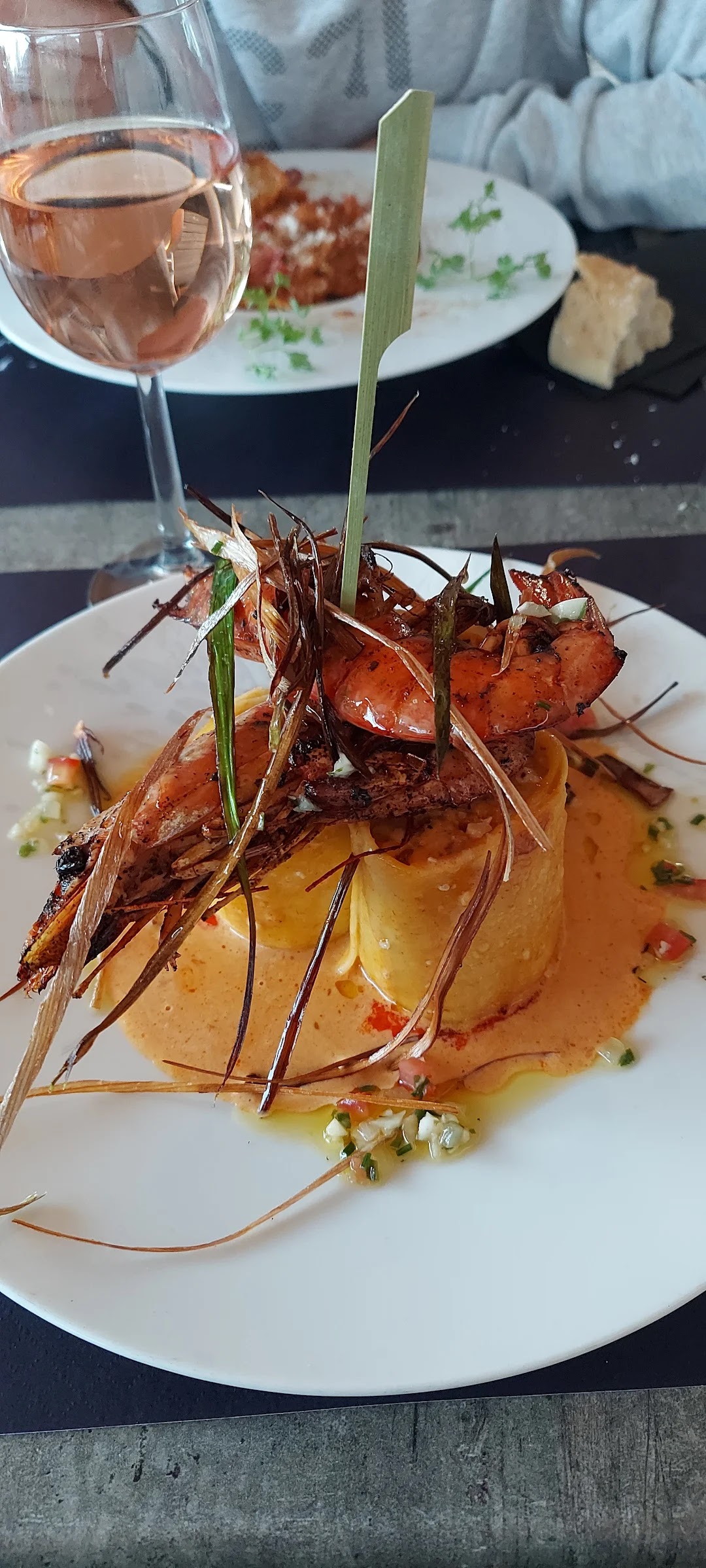 Accueil sympathique, Le croustillant aux langoustines....une merveille 😍 et le petit plus, un bon génépi offert 👍