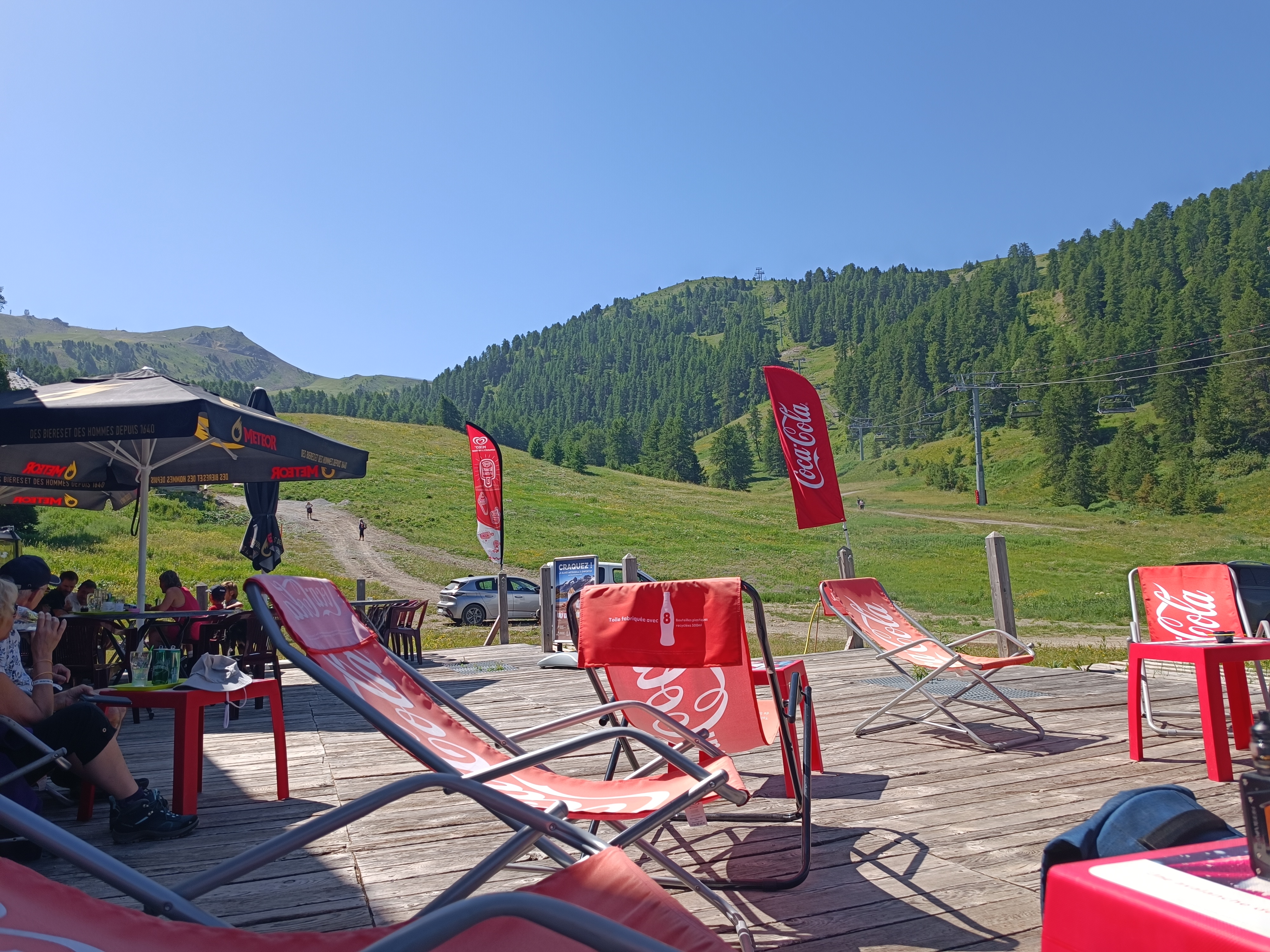 Belle terrasse au soleil, beaucoup de choix en plats et boissons, personnel et ambiance sympa (musique ) bon et bêta lieu de restauration sur les pistes de risoul.