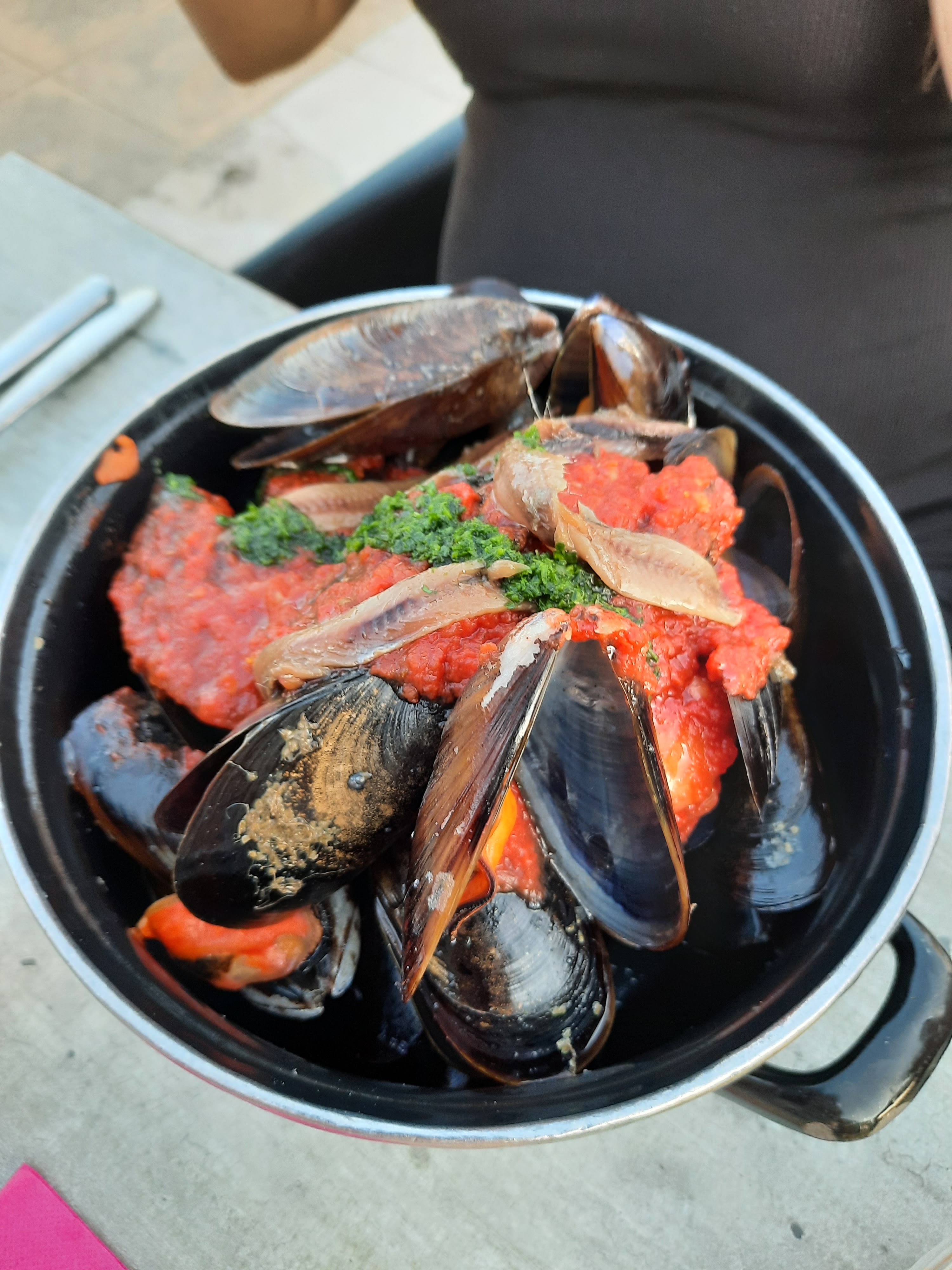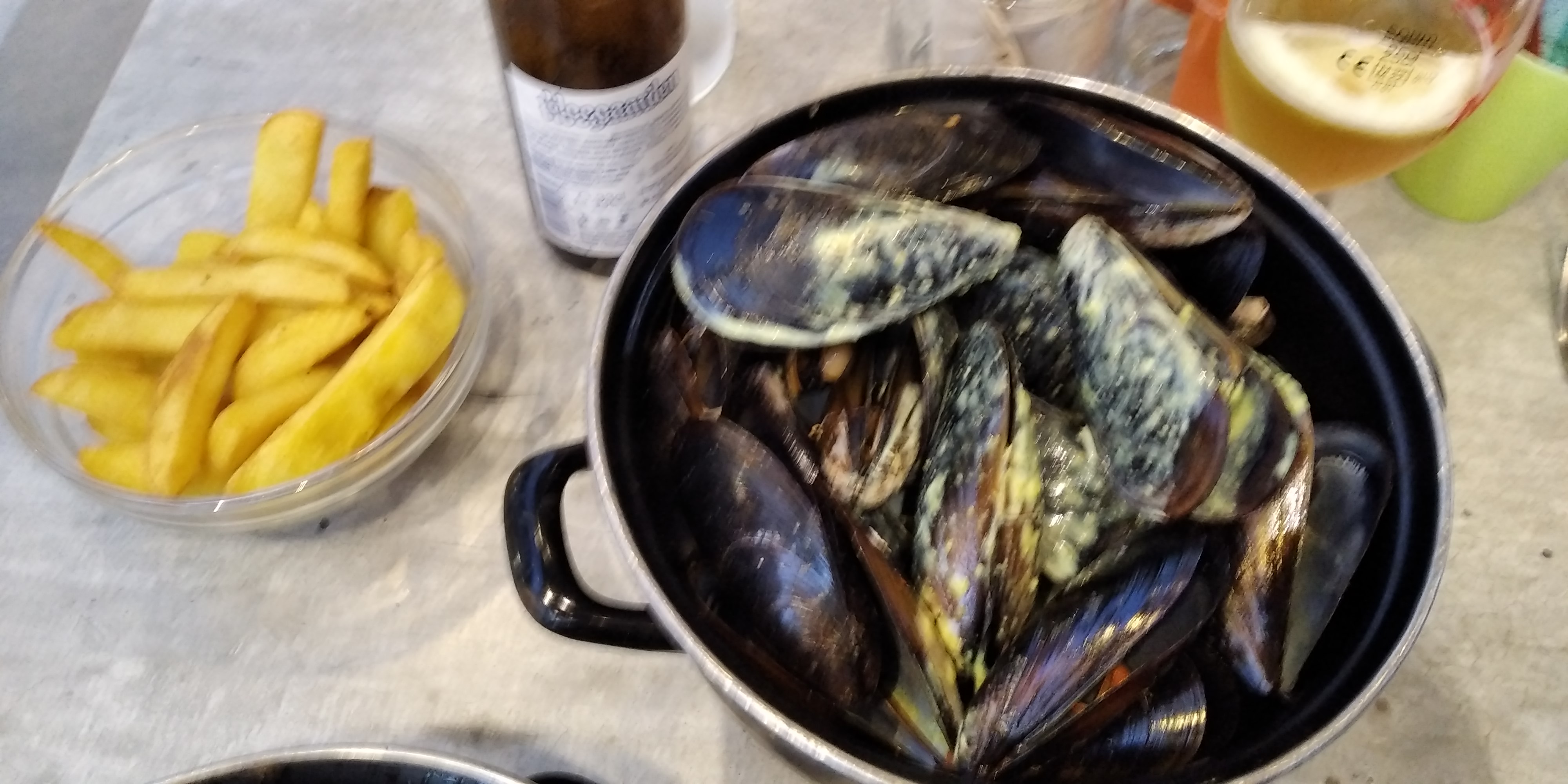 Très bonne soirée en bord de plage. Moules au chorizo super (attention chorizo pas pour les petites filles 😁)