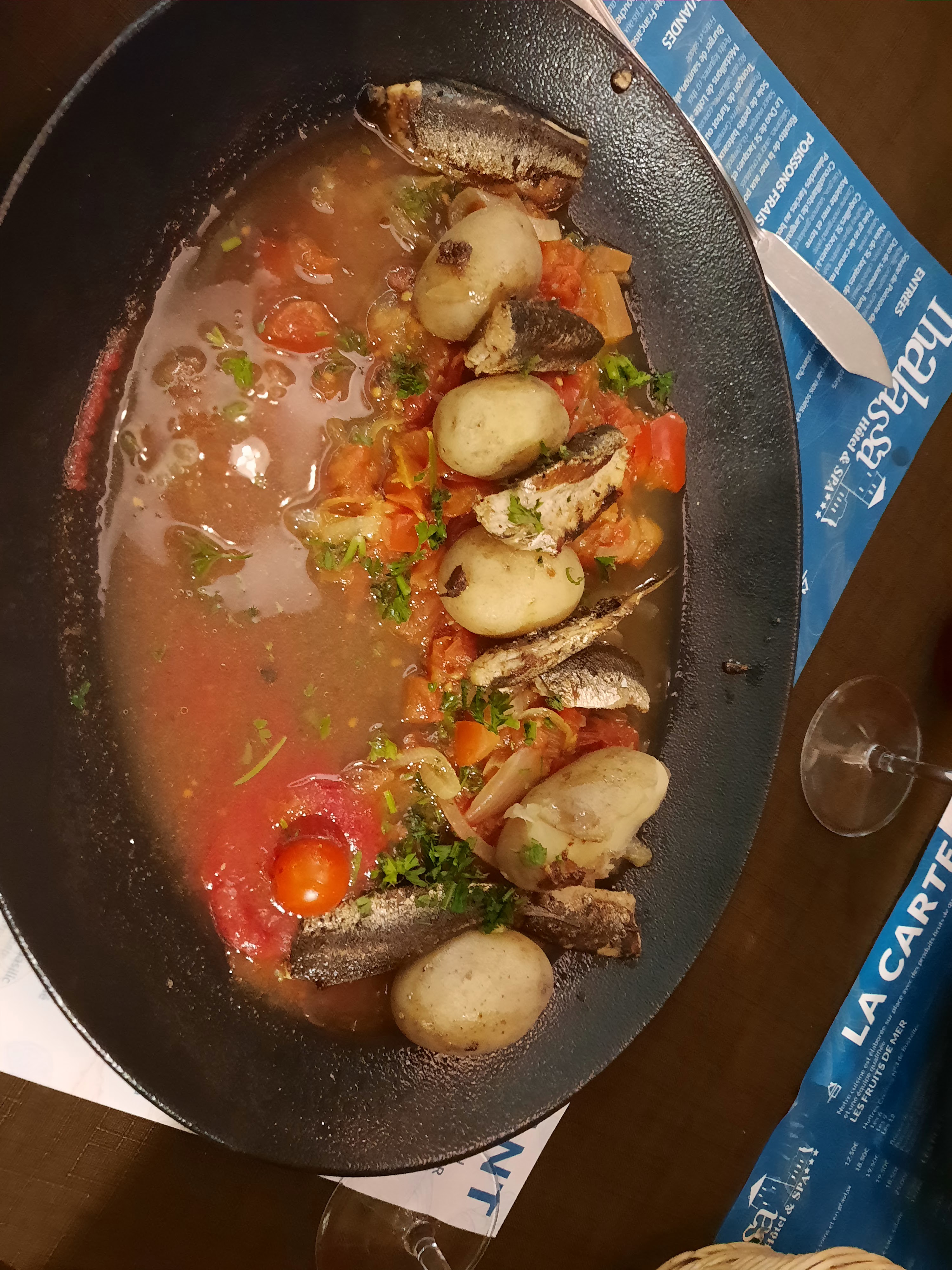 Très déçue par ce repas trop long, on nous a apporté deux fois les cuillères pour le dessert et même le dessert alors que nous n'avions pas eu le plat. Et là grosse déception les sardines n'étaient pas fraîches ou avaient elles aussi attendues donc réchauffées mais les arrêtes ne se détachaient pas... Et tout ça pour 29 euros. A éviter !