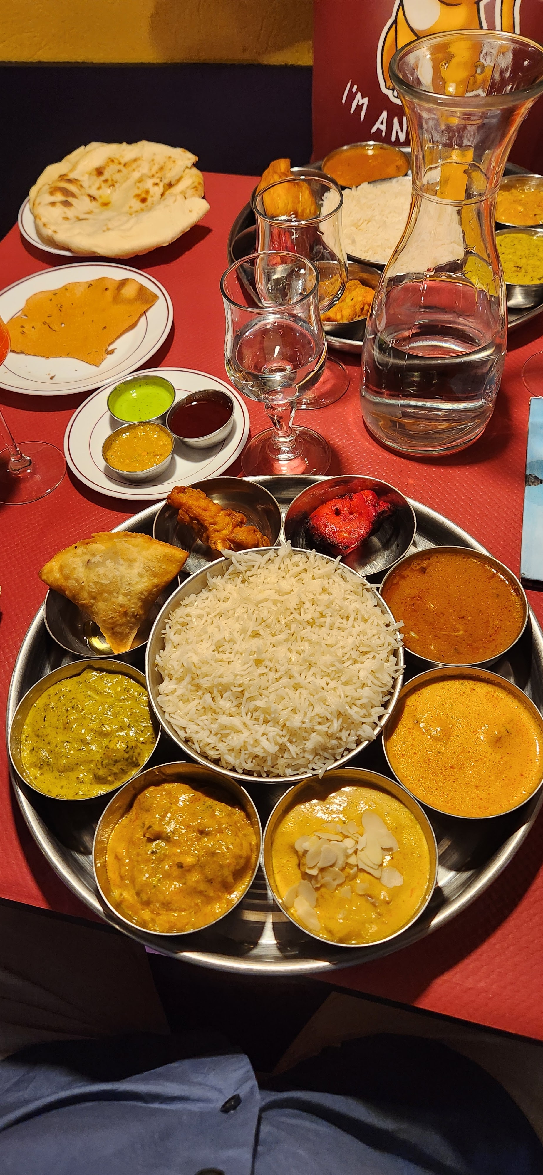 C'était une expérience incroyable. Ma première fois dans un restaurant indien. Nous avons toujours hésité à y aller et nous avons choisi le Thali. Nous avons pris, moi et ma femme, un menu chacun à 20€.. il y avait de tout. C'est vrai que c'était copieux mais c'est l'Asie, c'est l'Inde! Et c'était tellement bon. On fondait à chaque bouchée...🥰 Il y avait toute sorte de pain et j'ai eu au fromage et ma femme à l'ail. Il y avait en plus du riz. On ne croyait pas pouvoir tout finir. Au bout du compte, on a tout fini tellement c'était bon. C'est sûr, on y reviendra!