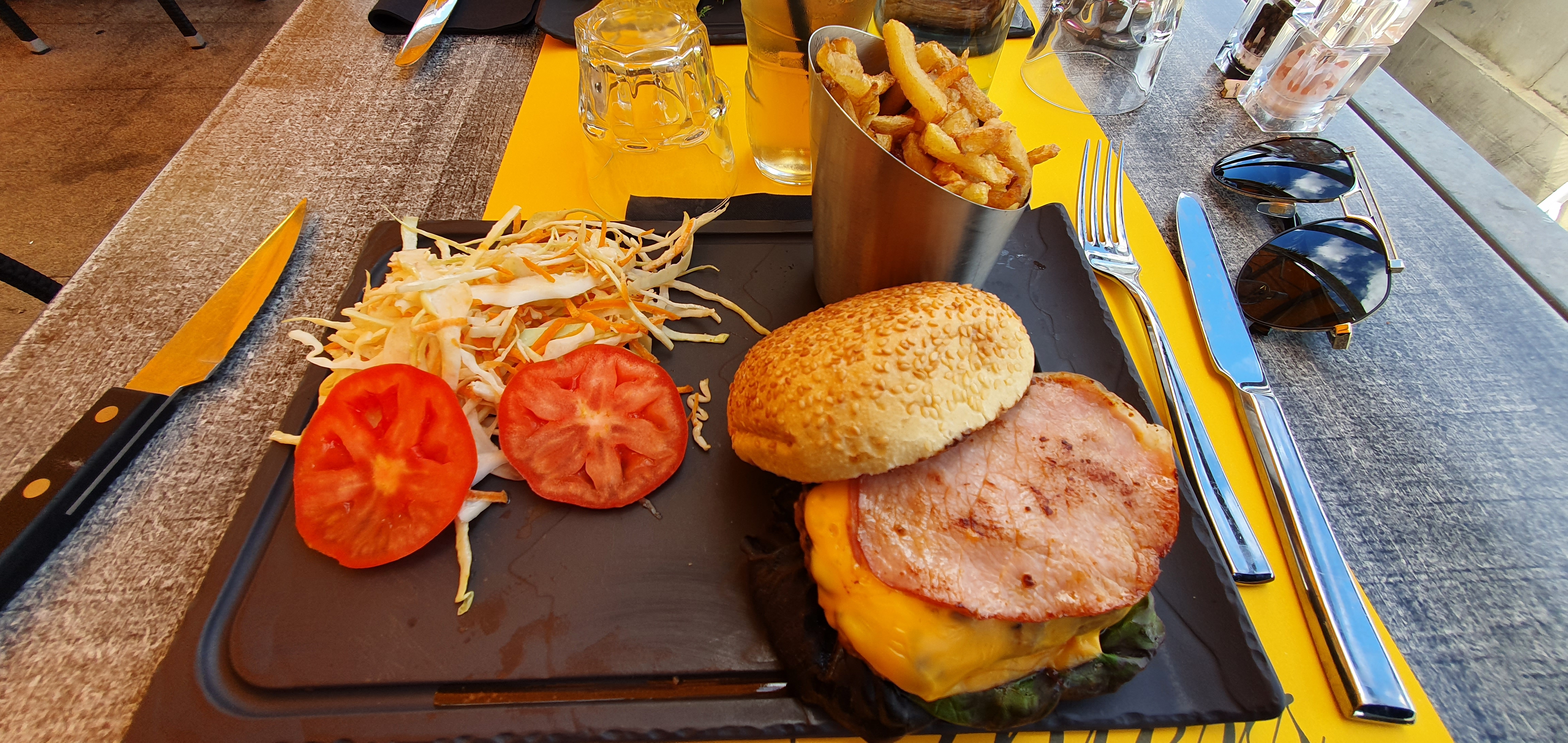 L'apéritif servi en même temps que le repas. Sympa de manger un burger avec un mojito. Des plats bien médiocre au niveau de la qualité. Un menu enfants avec des nuggets sans saveurs ( degueu) des frites congelés toute fines . Bref comme indiqué au serveur un rapport qualité prix qui n'est pas du tout à la hauteur . 110 euros à 4 dont un menu enfant et 4 boissons dont 2 aperos qui ont fait office de boissons repas du coup . Nous n'avons pas pris de desserts vu la médiocrité des plats . Nous sommes allés ailleurs . On comprend.ds mieux pourquoi il y avait de la place . Un restaurant qu'on pourrait appelé attrape touriste et qui ne cherche à faire que du volume sans regarder la qualité et sans visiblement se remettre en question au vu des nombreux commentaires négatifs... bref si voulez vous remplir le ventre uniquement ça peut servir mais si vous cherchez un restaurant où on cuisine fuyez !