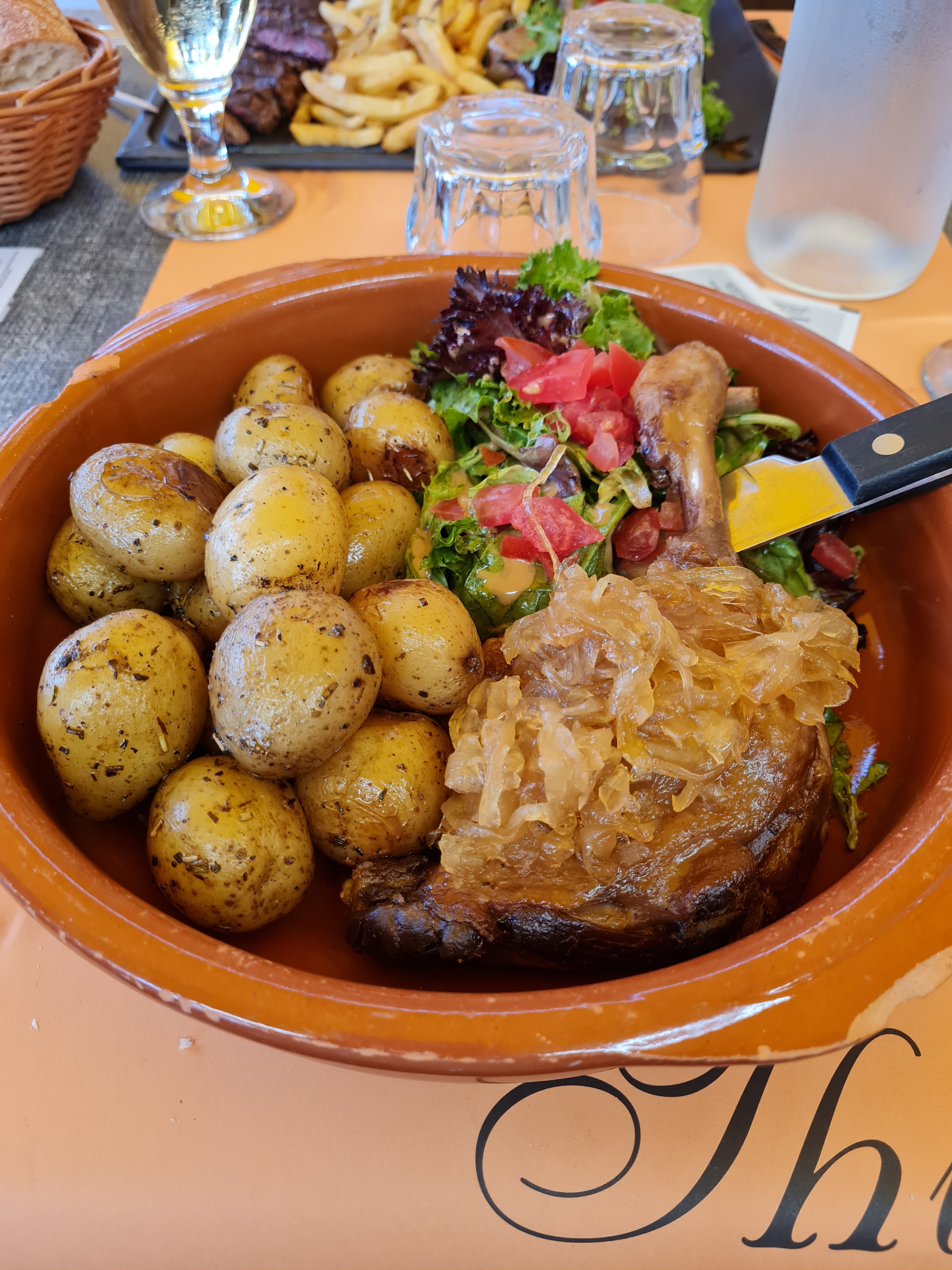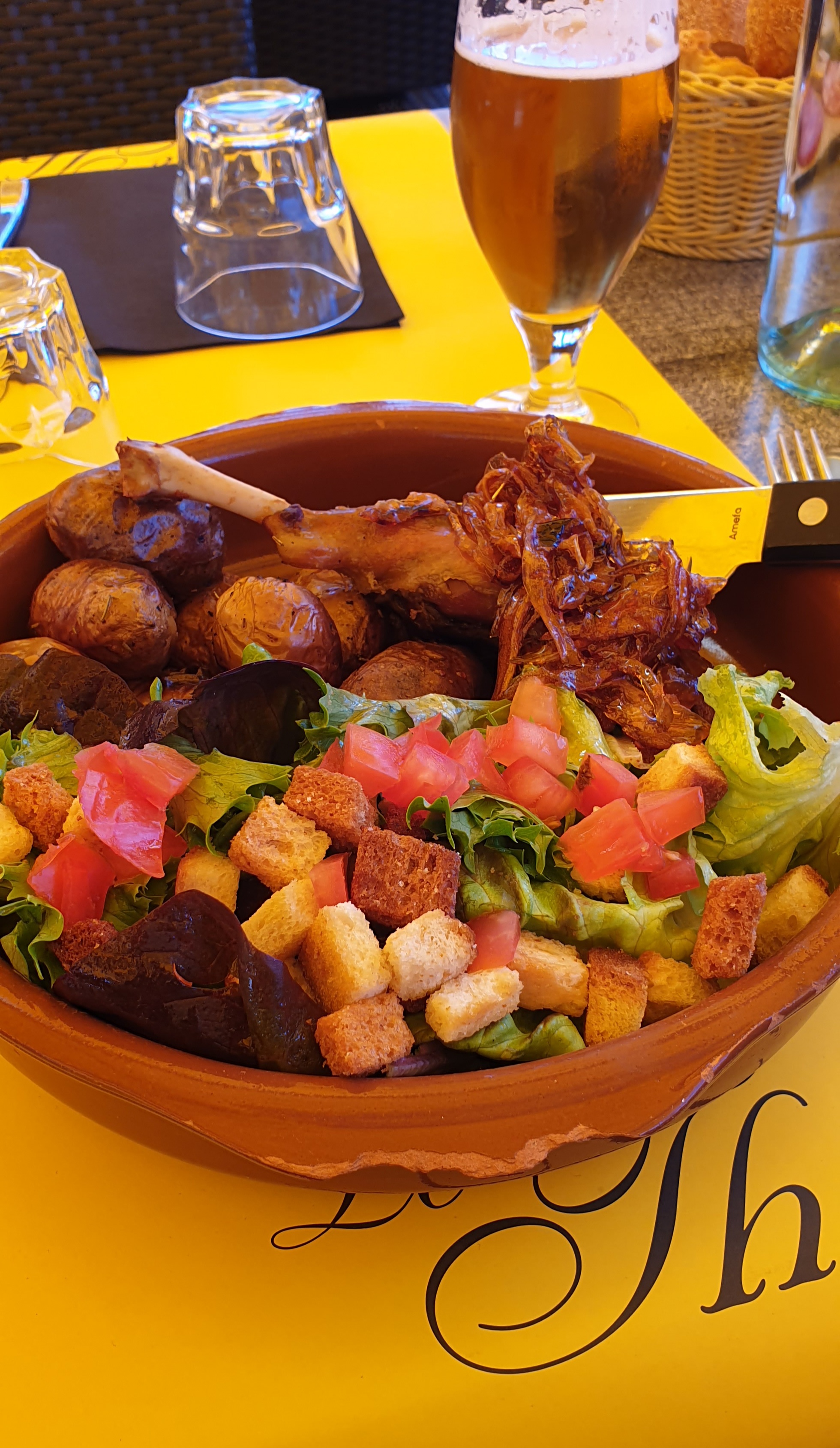 Très bien installés devant le bord de la mer, à la terrasse avec une très belle vue. Bien mangé nous trois. Un seul bémol, c'est la cuisse de canard (confit) pas assez gros et sec, pas tendre. Mais dans l'ensemble, bien mangé !