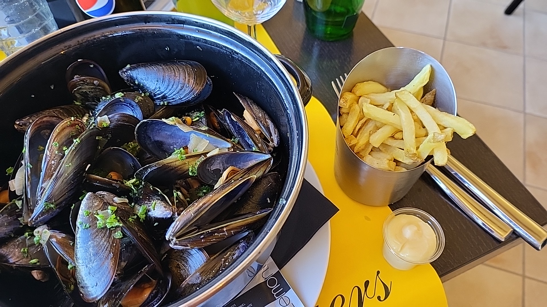 Nous nous sommes arrêtés en famille pour manger en bord de mer moules frites marinières déception totale les moules n'avaient aucun goût même pas de sel comme lavés..la couleur blanche j adore ça mais là je les ai laissées le frites pas top non plus ...enfin a fuir vraiment je suis d'accord avec les avis disant nuggets congelés c est vraiment le cas !!!je déconseille vraiment