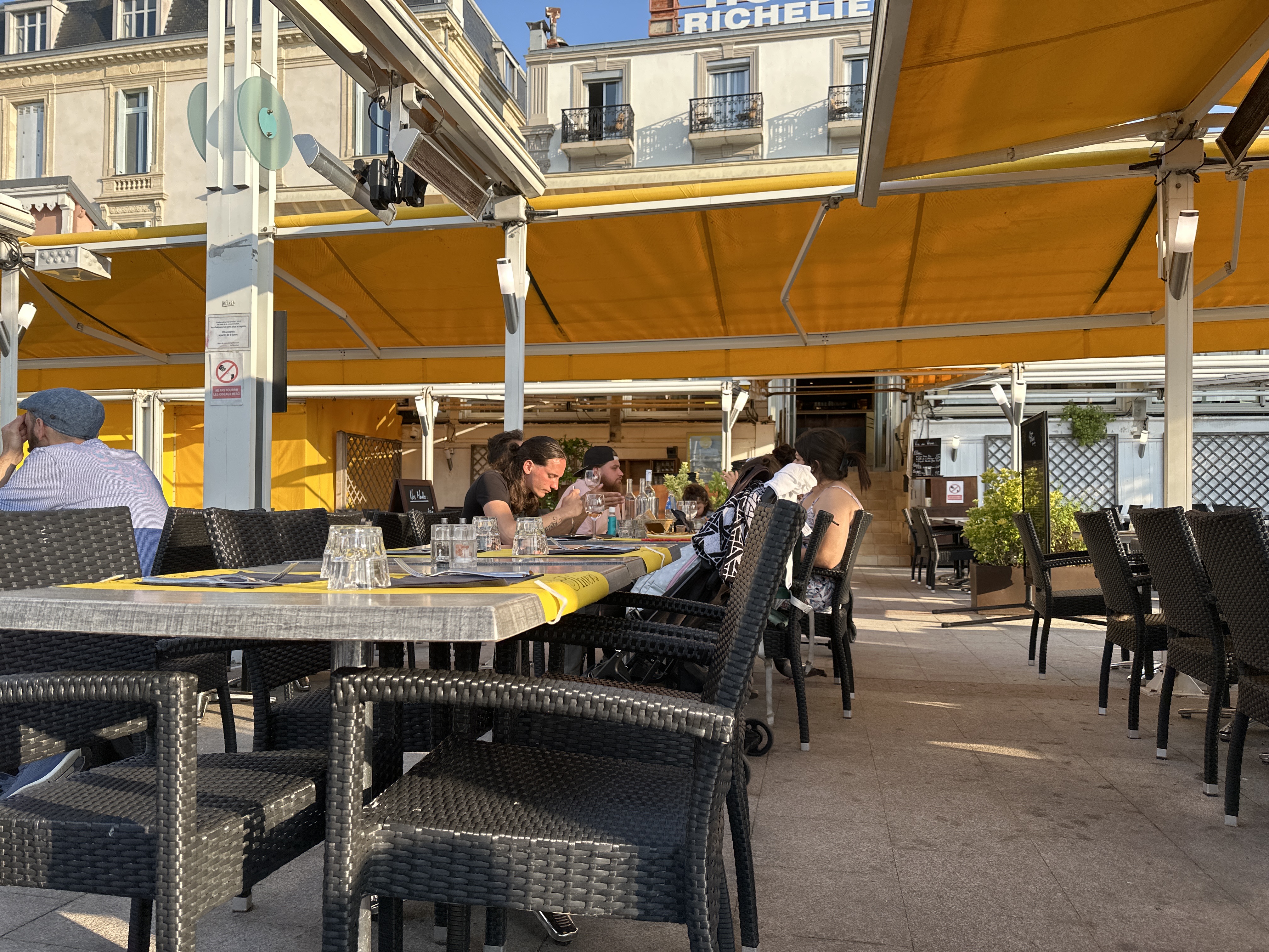 Emplacement parfait Service rapide Beaucoup de choix au niveau de La carte La viande n’était pas tendre et les frites surgelés Les pâtes été bonnes Un bon rapport qualité prix Le gros bémol honteux de payer 5,50€ un Perrier