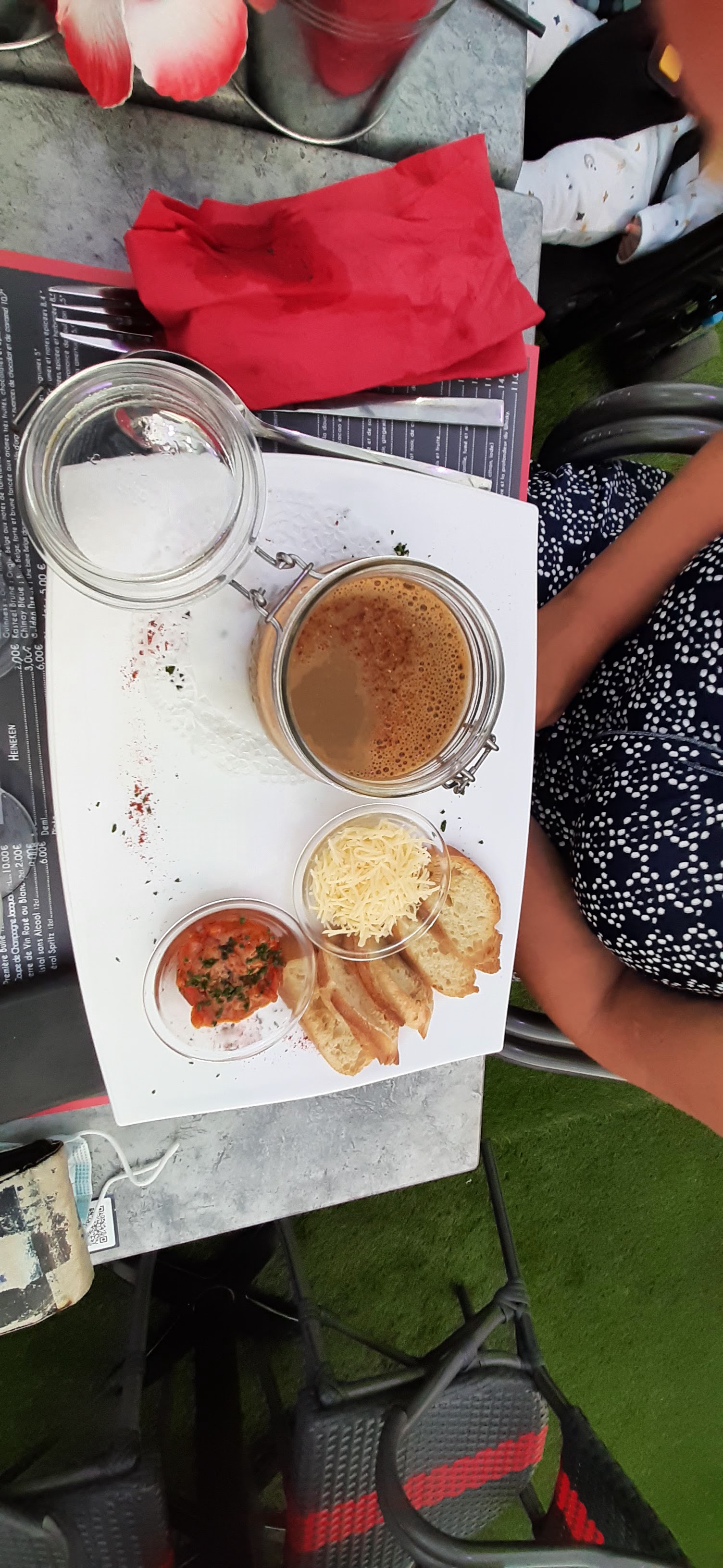 Pour notre 1ere fois accueil chaleureux d'Anto ... très bon plat entrecôte.. sa sauce . Son parmesan .sa salade accompagnée d un écrasé de pommes de la terre ... crème brûlée/ chantilly .. parfait et pour moi café ☕️ avec mon dinou