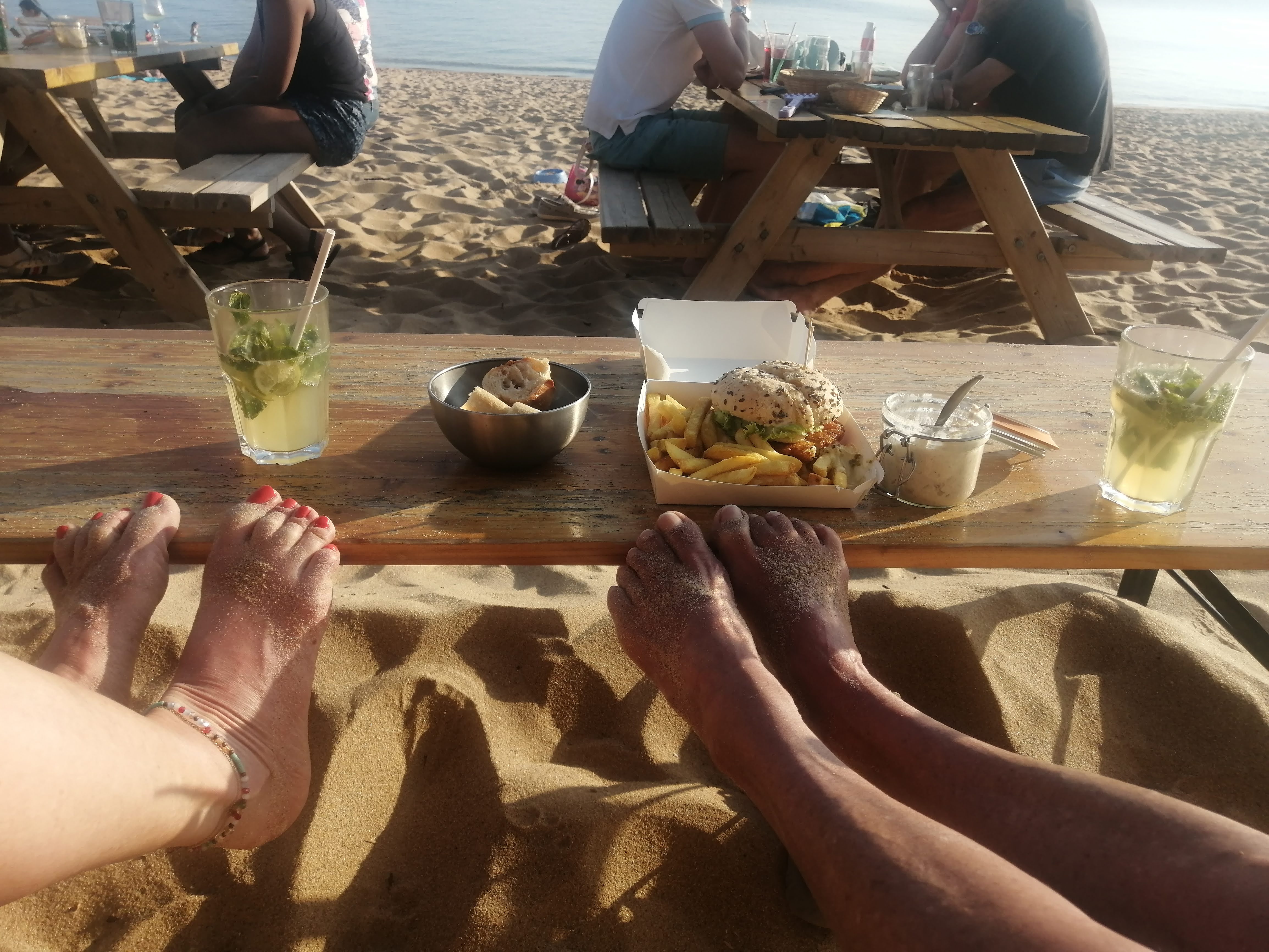 Manger les pieds dans le sable ! Serveurs très sympa