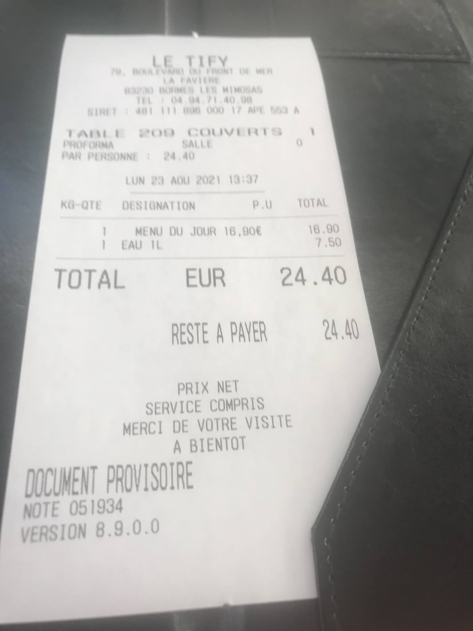 Nous avons était bien reçu malheureusement le prix reste assez chère. Nous avons manger a St Tropez le midi au restaurant la Ponche a 4, nous en avons eux pour 180e avec 1 bouteille de vin plus apéritif et le soir non avons voulu manger au Tify un restaurant que j'ai connu plus jeune lors de mon enfance, nous en sommes sortie avec une addition a 128e avec une demi bouteille plus apéritif Je trouve que les prix ne sont pas en adéquation avec la carte sinon nous avons très bien manger merci pour le service et le shooter offert par la maison je vous souhaite une bon continuation et merci pour l'accueil