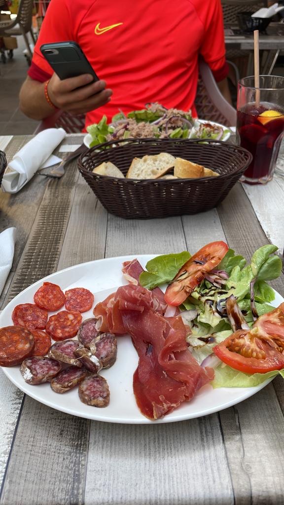 saucisse catalane (attendue fort longtemps d’ailleurs) ils nous ont offert des calamars à la romaine pour compenser l’attente . en fait c’était 1 malheureuse chipolata qui nous a été servie……. et moi brochette de viandes (certains morceaux pas cuits) je ne recommande absolument pas