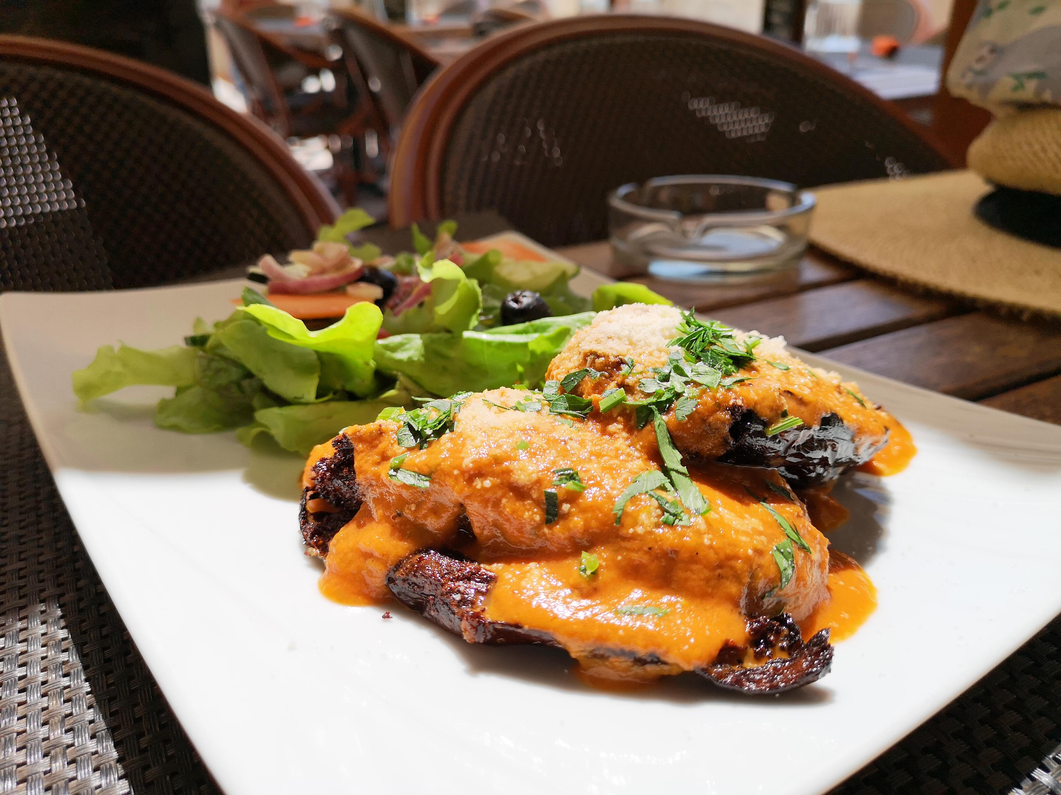 Les lasagnes végétariennes au fromage corse étaient vraiment très très bonnes. La sauce tomate, indiquée « faite maison », m’a rappelé celle d’une grand-mère sarde que je connais très bien. Sans compter que ça fait plaisir de trouver une alternative sans viande. Le cadre est également sympathique, à quelques pas des remparts et de la mer !