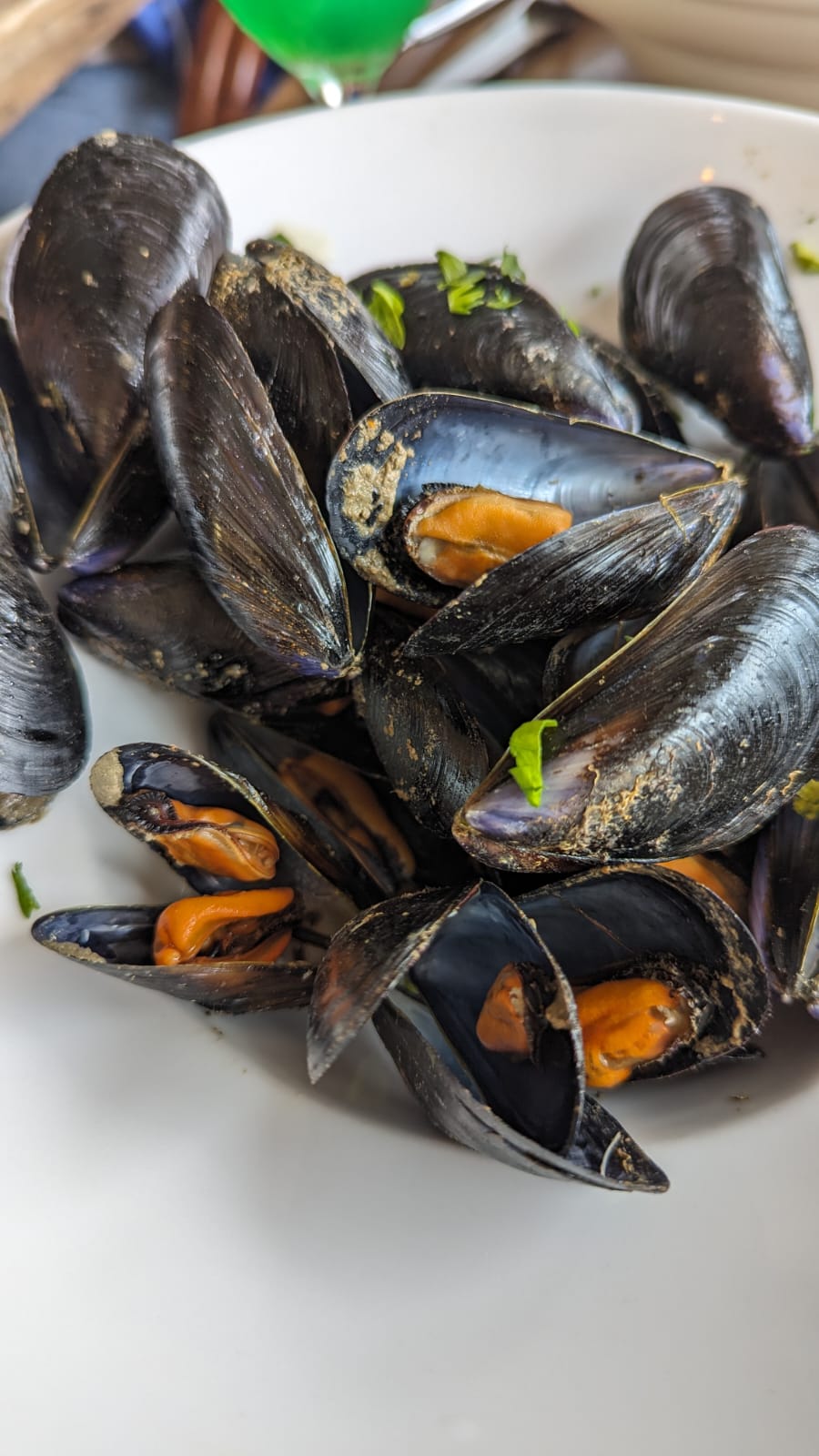 Apero arriver avec le plat, Moule ouverte à la vapeur avec une louche de sauce même pas marinée. Je déconseille