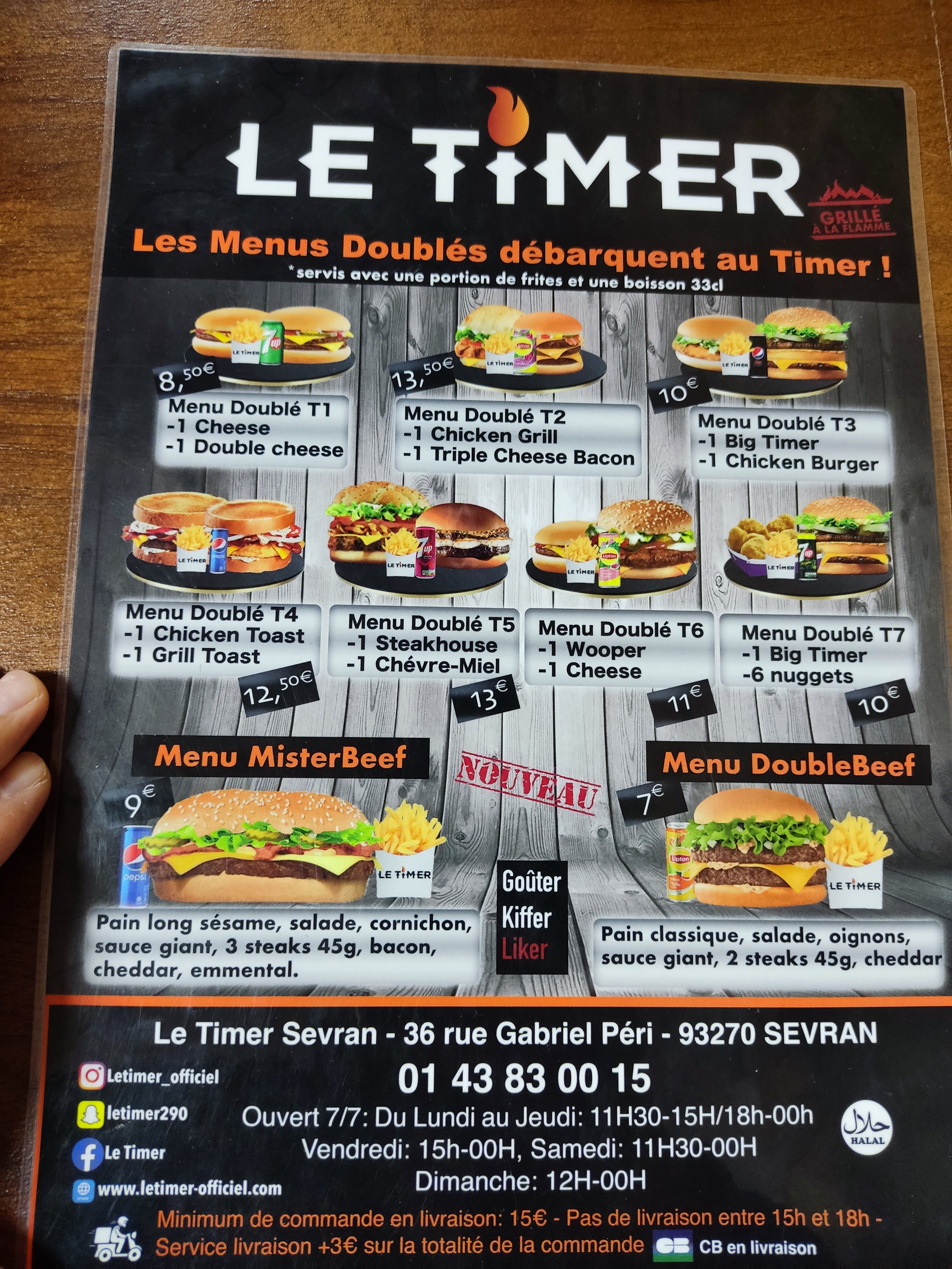 Les burgers sont vraiment bon et beaux, ils sont cuisinés à la demande donc ils ne se ramollissent pas en attendant des heures. Les frites sont bien croustillantes également. On vous sert le tout bien chaud. Tout ce qu’on attend d’un fast food avec du bon goût et de la qualité en plus. Leur menu est entièrement halal ce qui est également appréciable pour ceux qui se privent des grandes chaînes que tout le monde connaît. Ils ont toutes les recettes de ces chaînes. Très heureuse d’avoir le timer au bout de la rue! Foncez :)