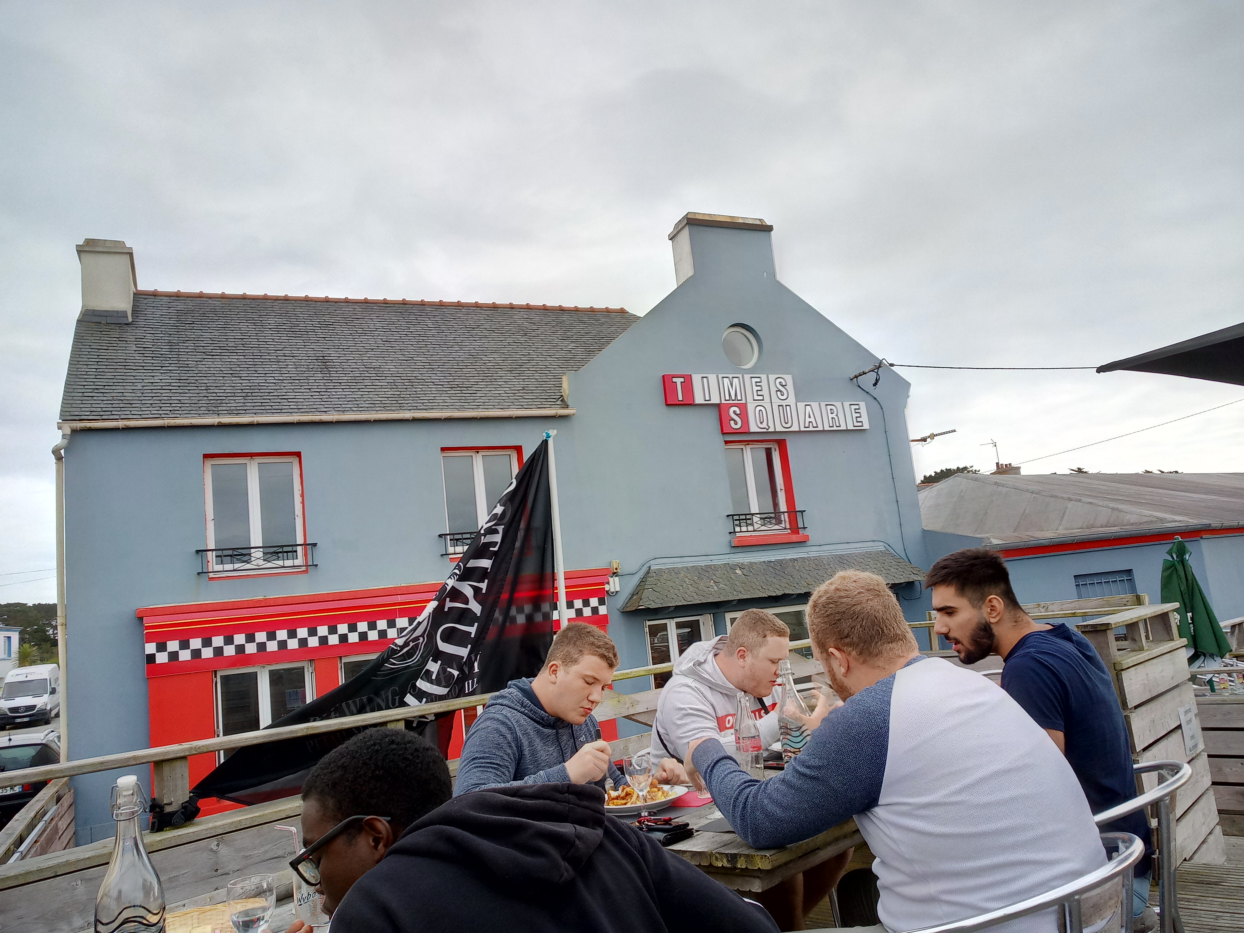 Il règne au « Times Square » comme un air d’Amérique, pas étonnant quand on sait que les rivages de Montauk sont juste en face, en enjambant l’océan ! On apprécie la terrasse en bois donnant sur la baie de Lampaul et la mer d’Iroise; les plats d’inspiration nord américaine (mais pas que) qui sont riches en goûts, faits maison et aux prix raisonnables. Et le service au pti soin et plein de bonnes énergies ! Go for it ! J.