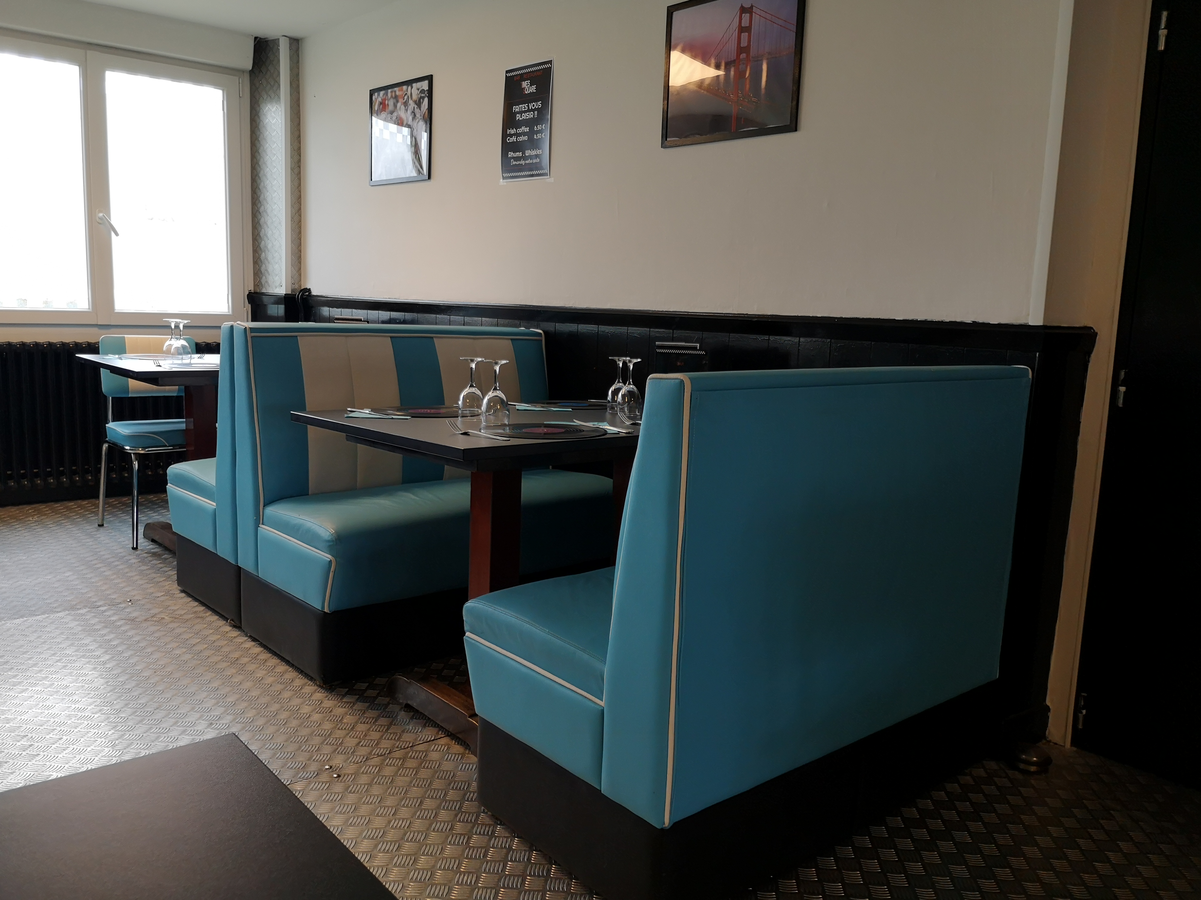 1 coté bar un peu petit et bruyant mais une déco sympa avec fléchette et billard et 1 coté restaurant au look américain sympa coté cuisine sa faisait longtemps que j'avais pas mangé de hamburger et de frites aussi bonne des recette original avec de bon produit le résultats est parfait le service est très sympa l'attente plus que raisonnable pour du fait maison les prix abordable au vu de la qualité le restaurant dispose également du salle de réception et diffuse les événements sportif vraiment sympa je recommande.