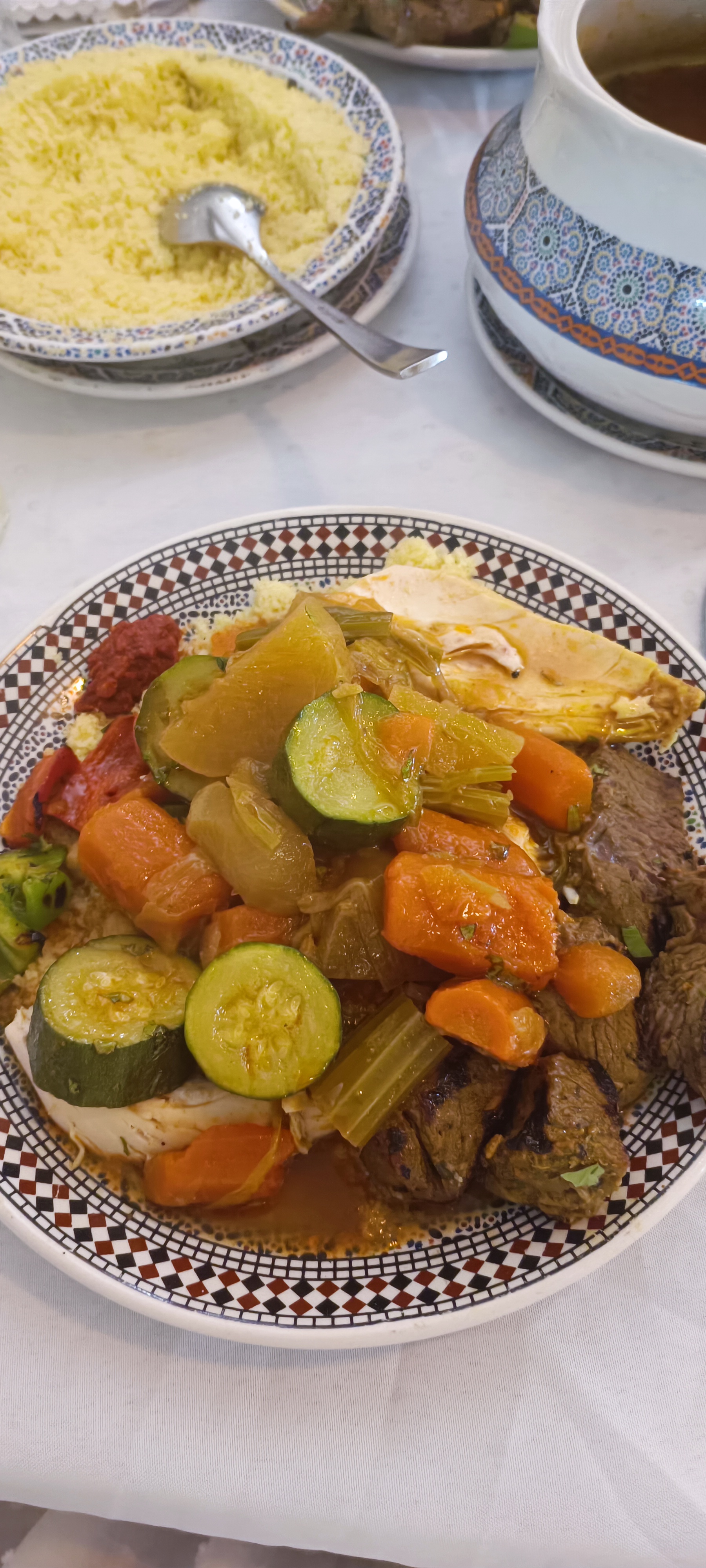 Couscous plein de saveurs. Semoule très fine. Un couple de restaurateurs charmant et attentif. Nous avons bu sur leurs conseils un Koutoubia (vin d'Algérie) tout à fait adapté. Un thé à la menthe pour terminer et ce repas nous a comblés.