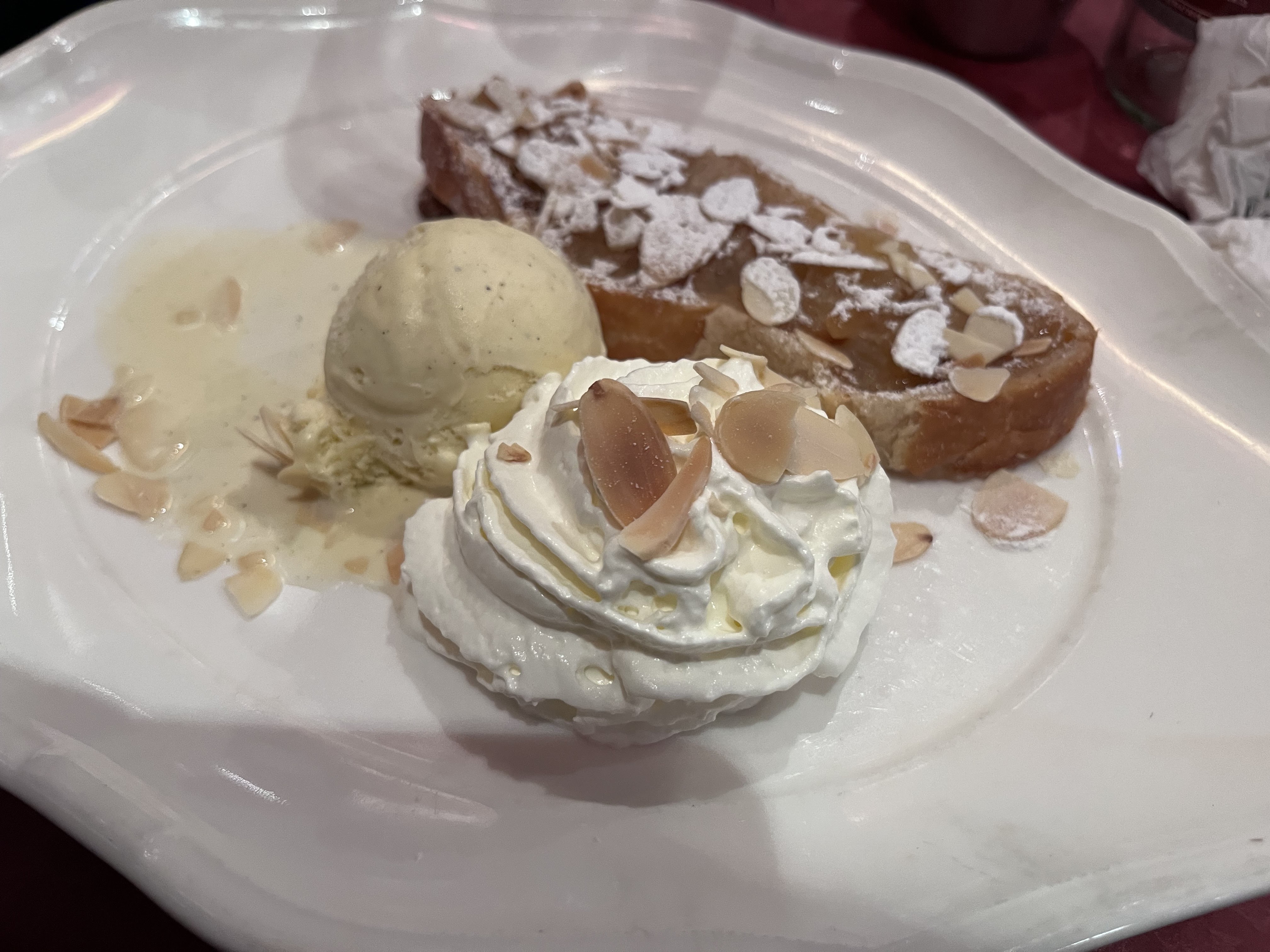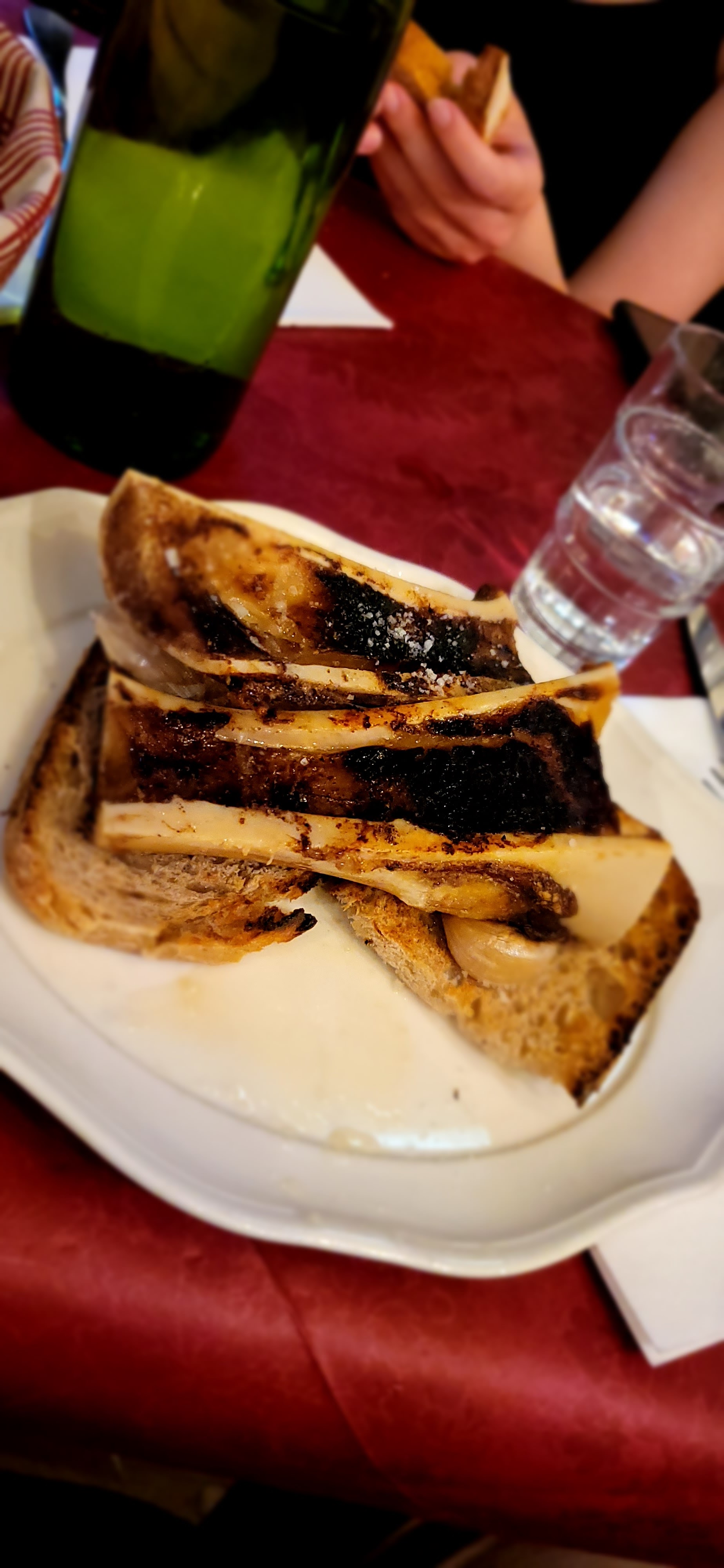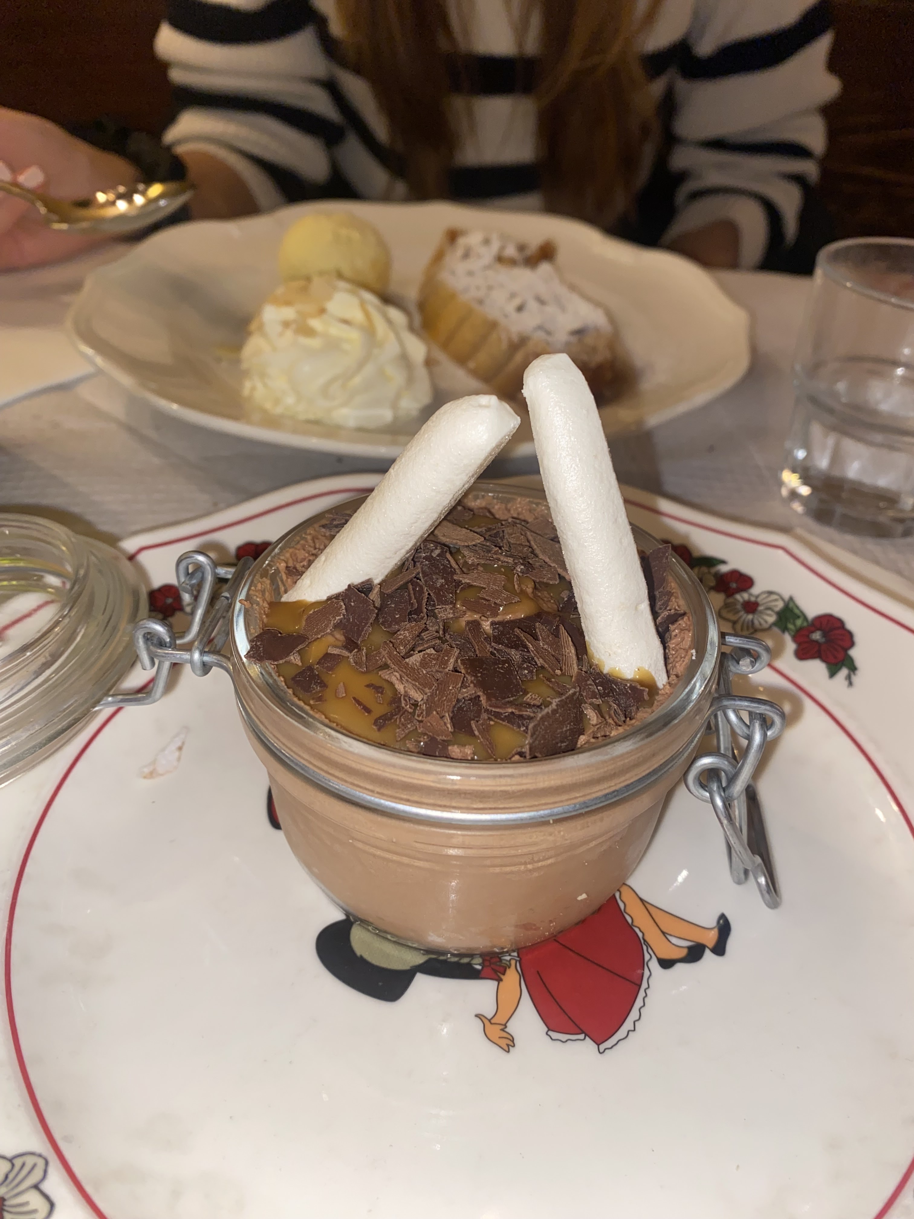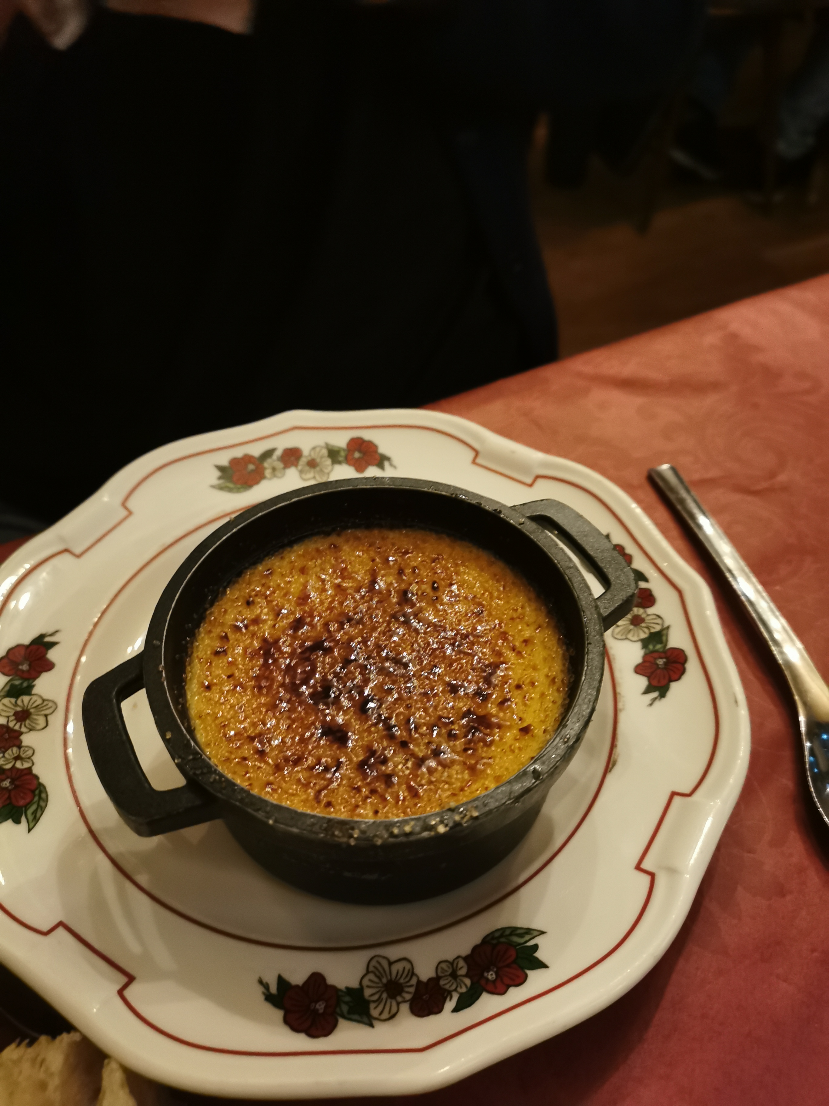 Probablement l'un de mes plats préférés en France. J'ai commandé le repas de trois plats et sélectionné la moelle osseuse en entrée, le ragoût de porc avec purée de pommes de terre comme plat principal, puis le strudel aux pommes pour le dessert. Tout était tout simplement fantastique mais mon préféré était sans aucun doute le ragoût de porc. Le porc était parfaitement cuit et n'avait pas de texture sèche et filandreuse. Le ragoût lui-même devait être le meilleur que j'ai jamais mangé. J'y ai même trempé ma purée de pommes de terre et mon pain, c'était tellement bon. L'atmosphère s'est réchauffée pendant que nous étions assis. C'était très calme à 19 heures lorsque nous nous sommes assis, mais à 20 heures, l'endroit était très vivant avec les conversations. Recommande fortement!