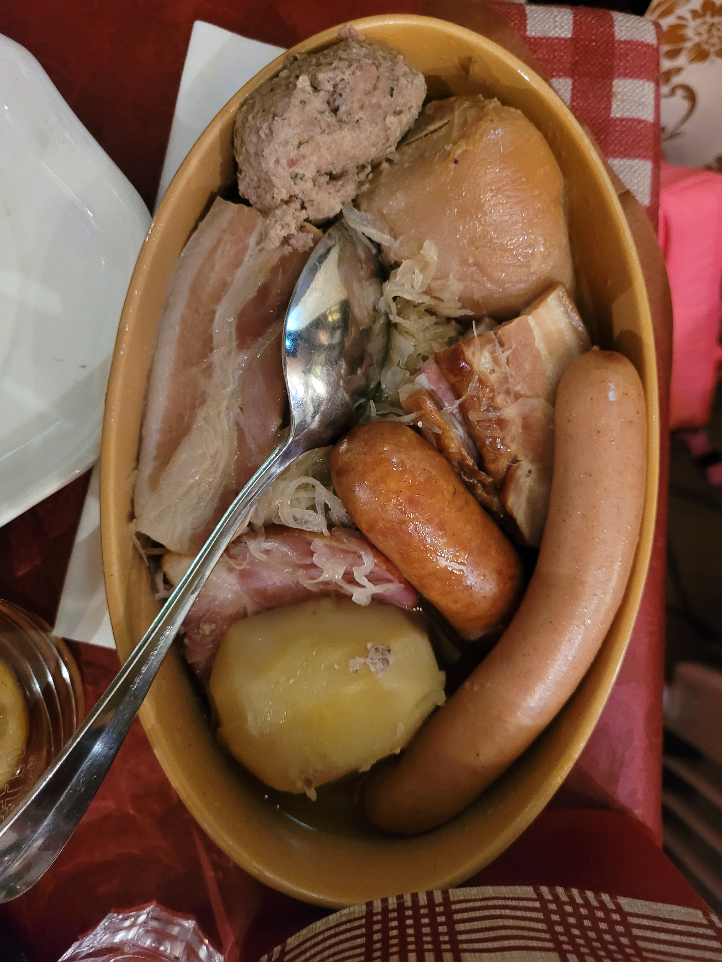 La nourriture était excellente et la variété des choix était impressionnante. Notre table avait de la choucroute, de nombreuses saucisses, du cordon bleu, de la moelle osseuse, du ragoût de bœuf. et quelques plats supplémentaires, ce qui était super de tout essayer. Le serveur était un peu insistant lorsqu'il s'agissait de suivre ses recommandations, mais il fallait s'y attendre dans un restaurant très actif.