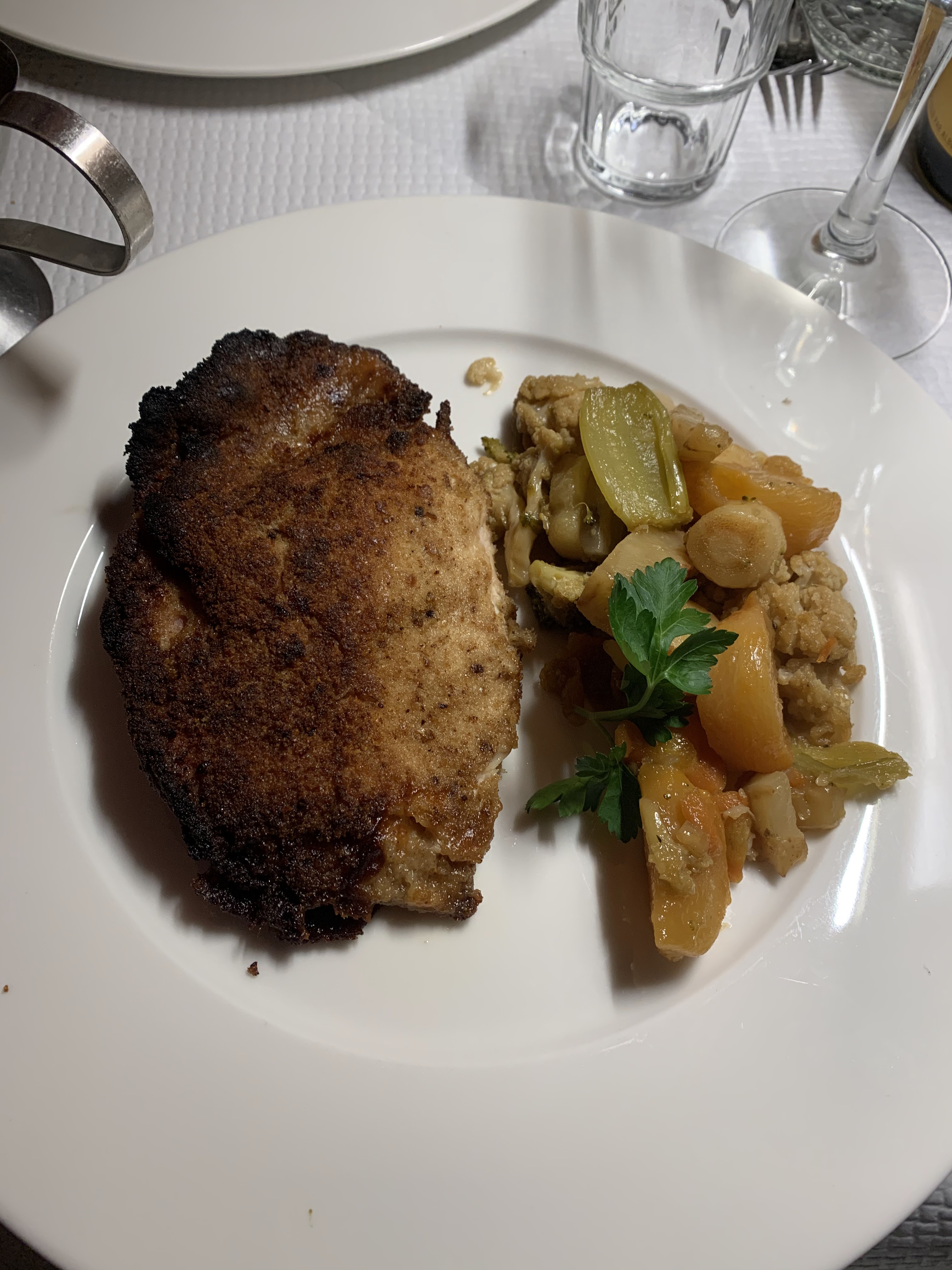 Je suis entré avec de grandes attentes, je suis reparti avec une déception. La nourriture était en dessous de la moyenne, bien sûr, pour le touriste moyen, cet endroit peut être acceptable, ils pourraient même attribuer à tort à cet endroit un 5 étoiles. Cependant, pour moi et mon groupe d'amis, cet endroit n'a pas fait la différence. Avec le serveur essayant de nous convaincre que nous nous trompons avec la moitié des choses que nous avons dites et n'acceptons pas les erreurs dans leur nourriture. Mon cordon bleu illustré dans le message a été brûlé en enfer, bien sûr, le serveur vous dira qu'il était censé être carbonisé comme ça, même après avoir vu à quel point l'intérieur était sec, il a cependant demandé si nous voulions le remplacer, nous avons nié. C’était une suggestion du chef, je ne veux pas savoir ce que le chef suggère d’autre à ce moment-là. Le foie gras n'était pas mal, il s'accordait bien avec le riesling que nous avions choisi. Après d'autres commentaires négatifs sur les chips vieilles d'une semaine, le serveur en a eu assez et est devenu tout simplement ignorant et insouciant, il ne voulait pas écouter et les quelques mots qui sont parvenus à ses oreilles ont tous été contestés. Un dessert était proposé à la fin, un gâteau Forêt-Noire, qui était essentiellement de la crème fouettée avec des tranches de crêpe de génoise au chocolat préparées à partir d'un pré-mélange. Je ne le recommanderais pas, sauf si vous avez vécu dans un dessert la semaine dernière.