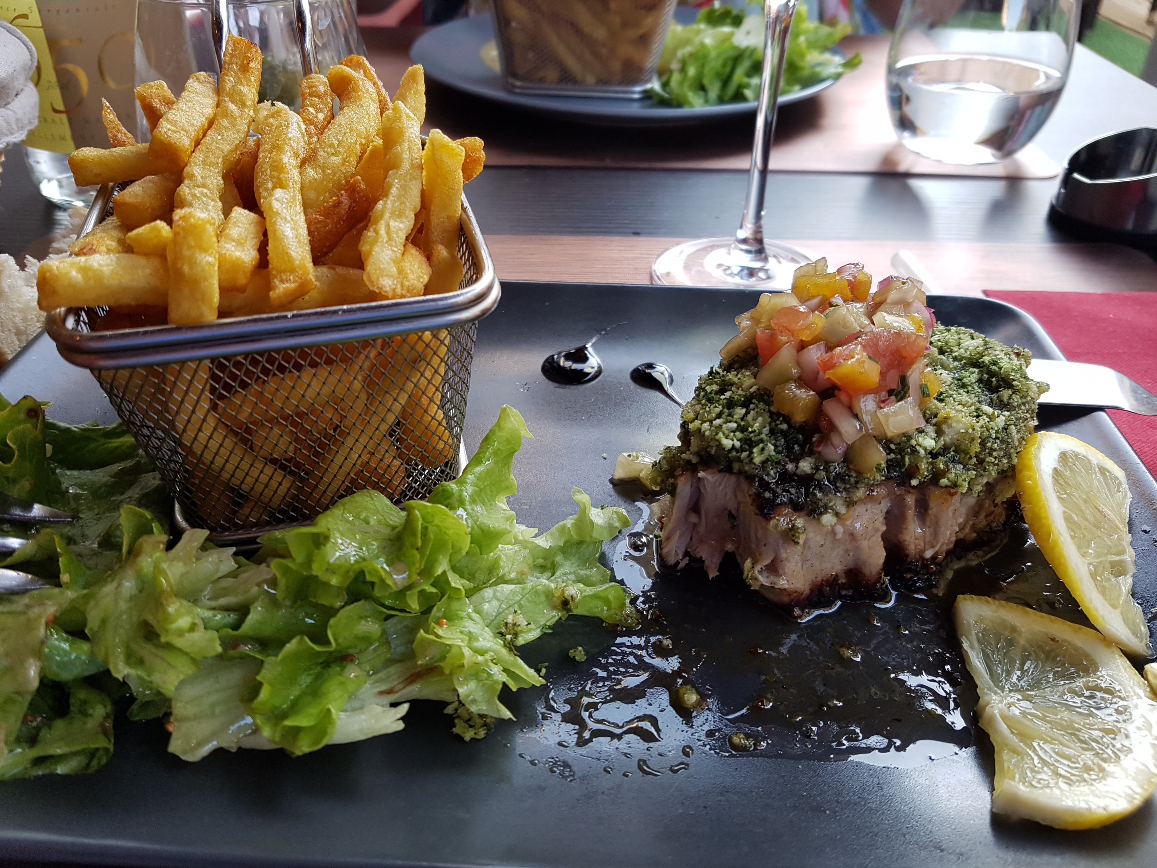 Bonne cuisine, produits frais et accueil charmant ; chaque plat peut être accompagné de frites maisons, gratin, wok de légumes ; bon choix de vins à prix raisonnable . mieux vaut réserver