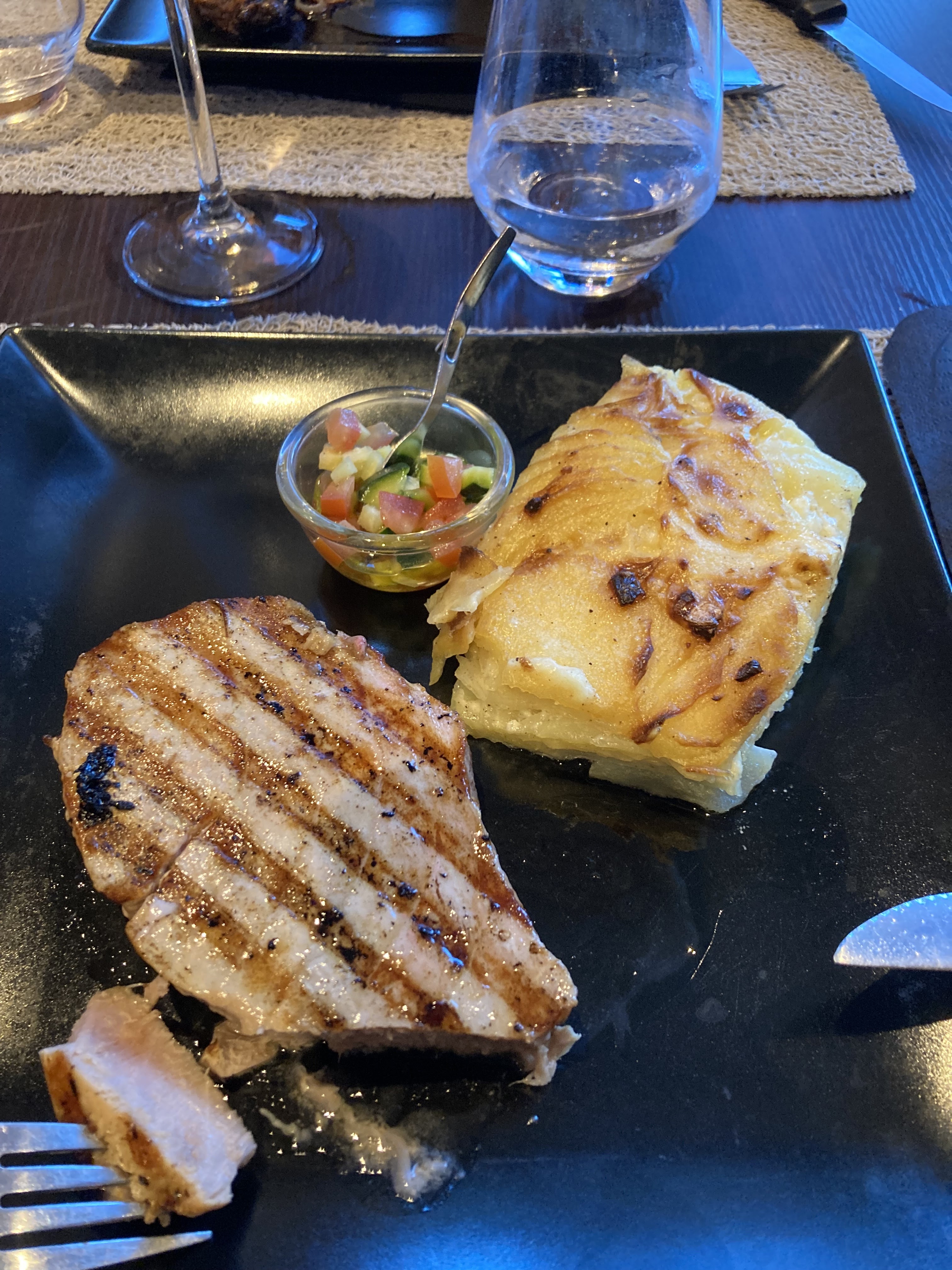 Une journée pluvieuse et ventée... Un accueil chaleureux, un service rapide mais aux petits soins Un thon mi-cuit et ses légumes croquants pour Madame, une entrecôte de 300g et ses frites pour Monsieur Une cuvée spéciale de Ramatuelle en accompagnement Une place pour le dessert ... Une adresse que je recommande 👍