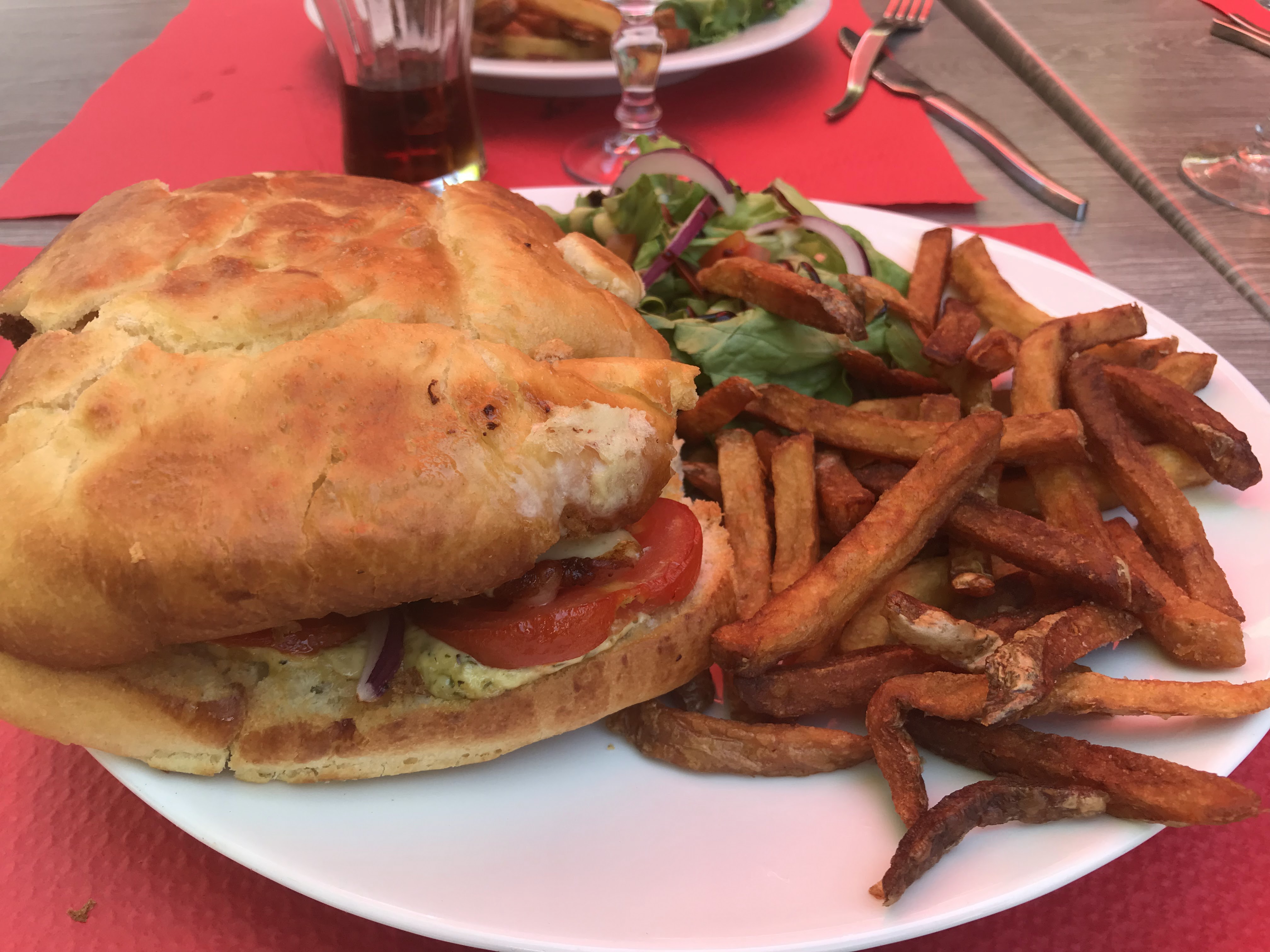 En terrasse sous un Catalpa parasol, nous sommes bien reçus. Un petit vin bien agréable pour commencer, le prix tout doux et le conseil avisé, nous démarrons par une petite assiette de charcuterie avant de nous régaler avec une omelette aux cèpes et le hamburger du chef. La carte est réduite mais laisse le choix de bien manger. Les produits sont frais, la cuisine est simple comme en proposent certains pubs irlandais. Les portions sont copieuses. Dessert correct et le café vraiment très bon. L’ambiance que créé le blues au son qualitatif, donne une touche vraiment appréciable à ce bon moment passé entre amis.