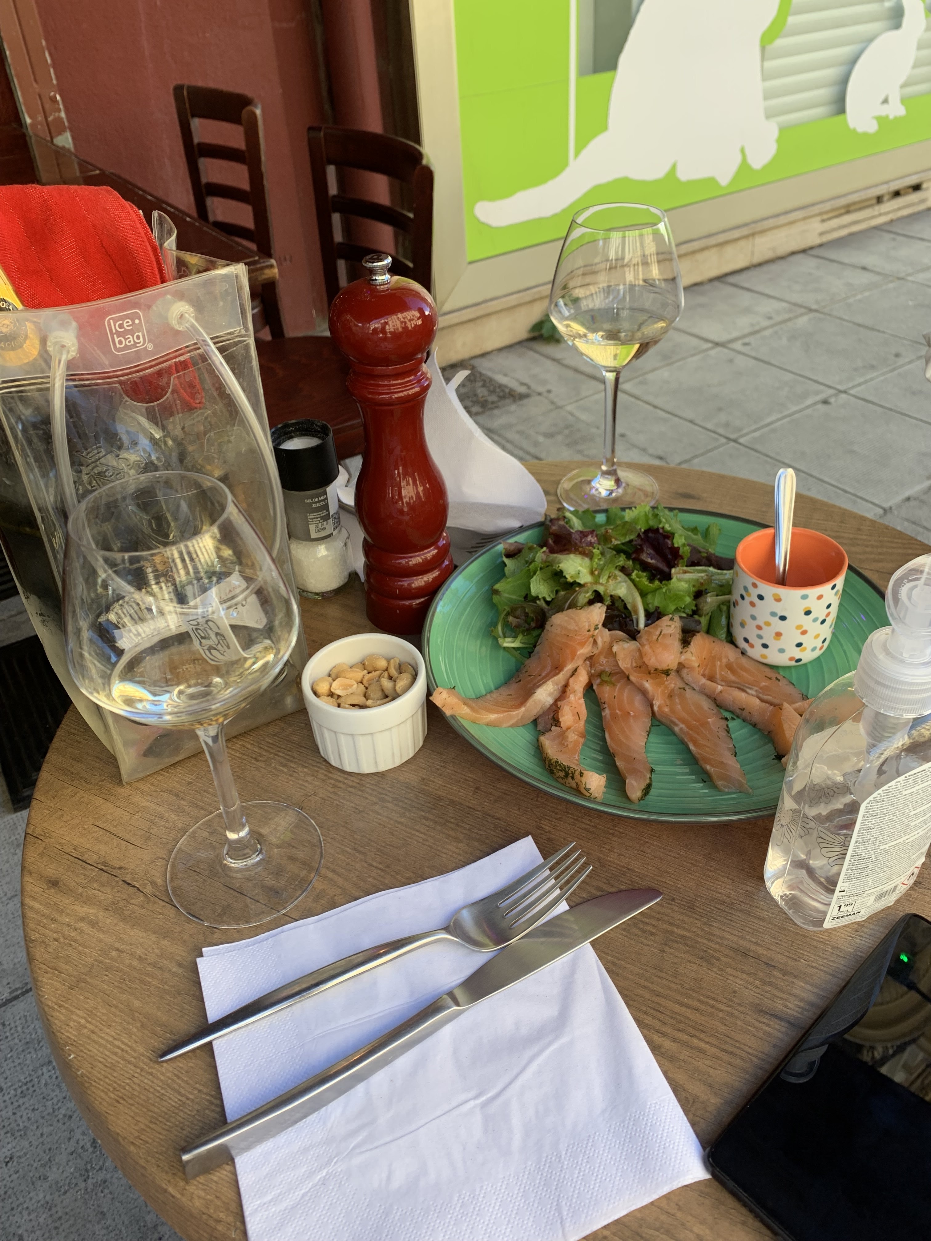 Nous avons passé une soirée très calme, avons pris un verre dehors. La dame qui s'occupait de nous était adorable. J'ai vraiment apprécié la nourriture et le vin. Le restaurant est français très authentique