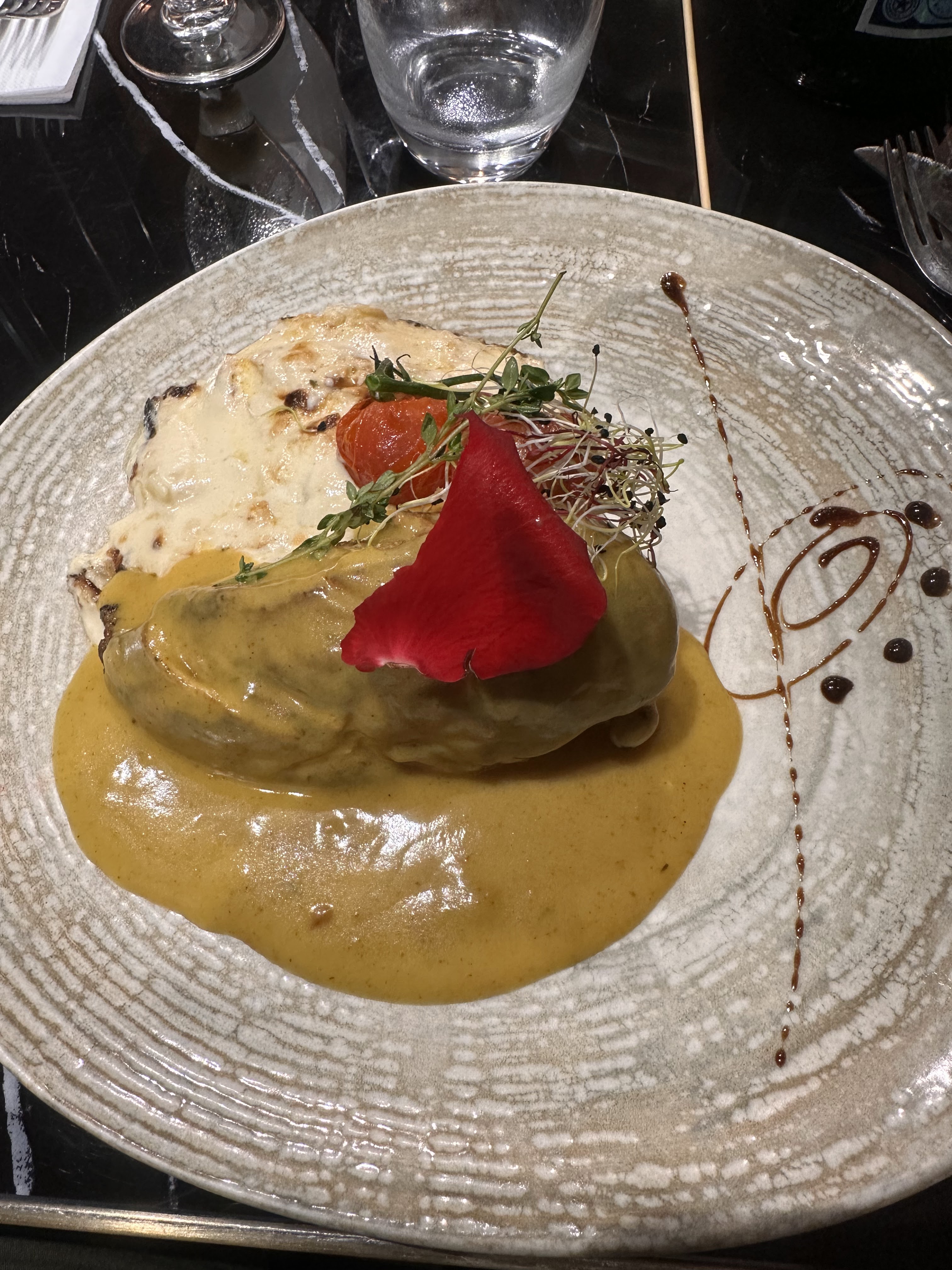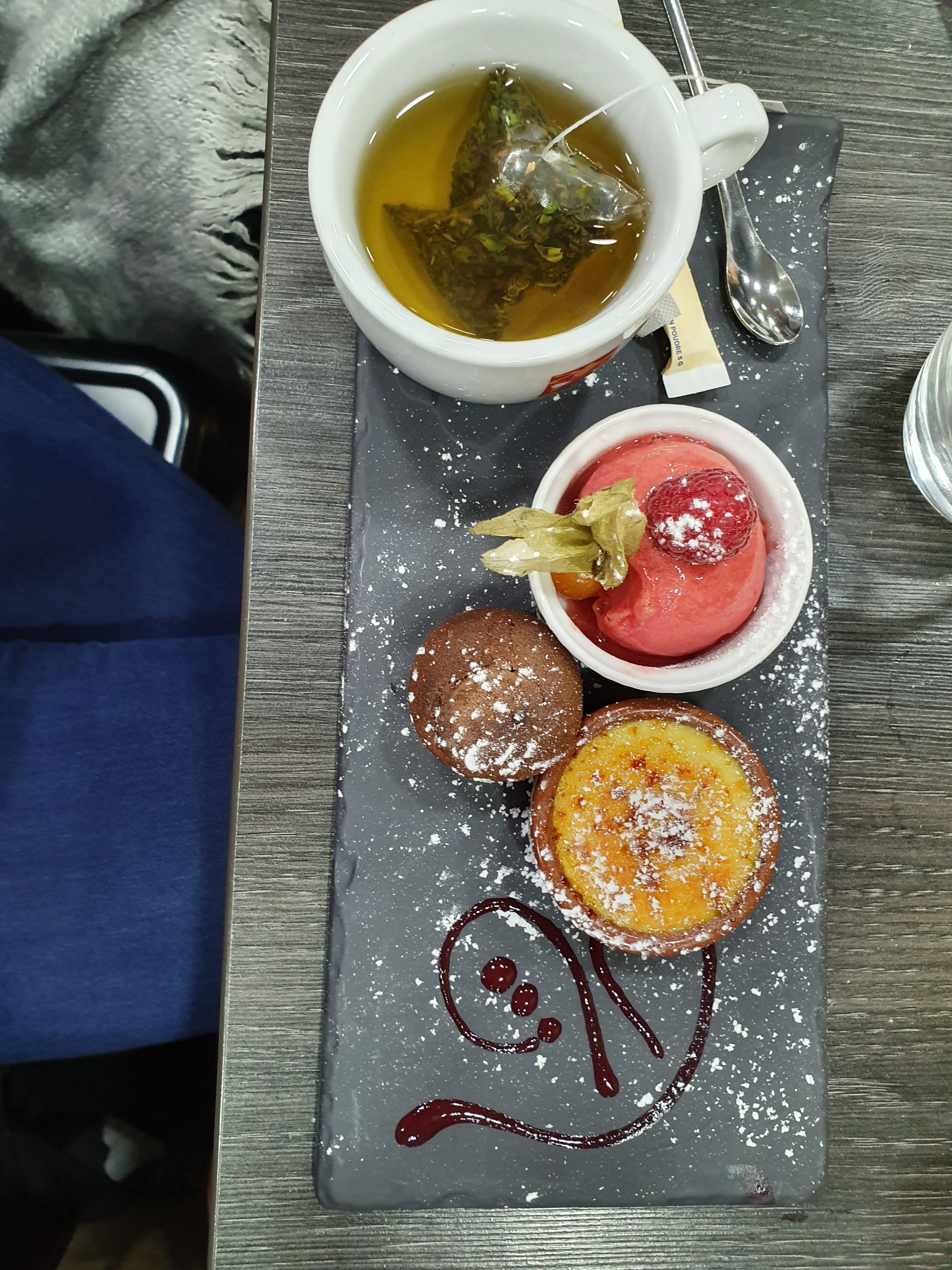 C’était très bon. L’entrer étais bon (pas fans personnellement) Le dessert Paris Brest revisité très bon aussi (mais préfère le classique) j’ai aussi pus goûter à la salade de fruit qui est parfaite (généreuse) Le plat était juste parfait, meilleur gratin dauphinois de ma vie 🤌🏾 (selon moi la portion devrait être plus généreuse) et l’agneau juste parfait Serveur très agréable (Rachid si je me trompe pas😅), si vous hésitez demandez lui il saura vous conseiller. Je reviendrai