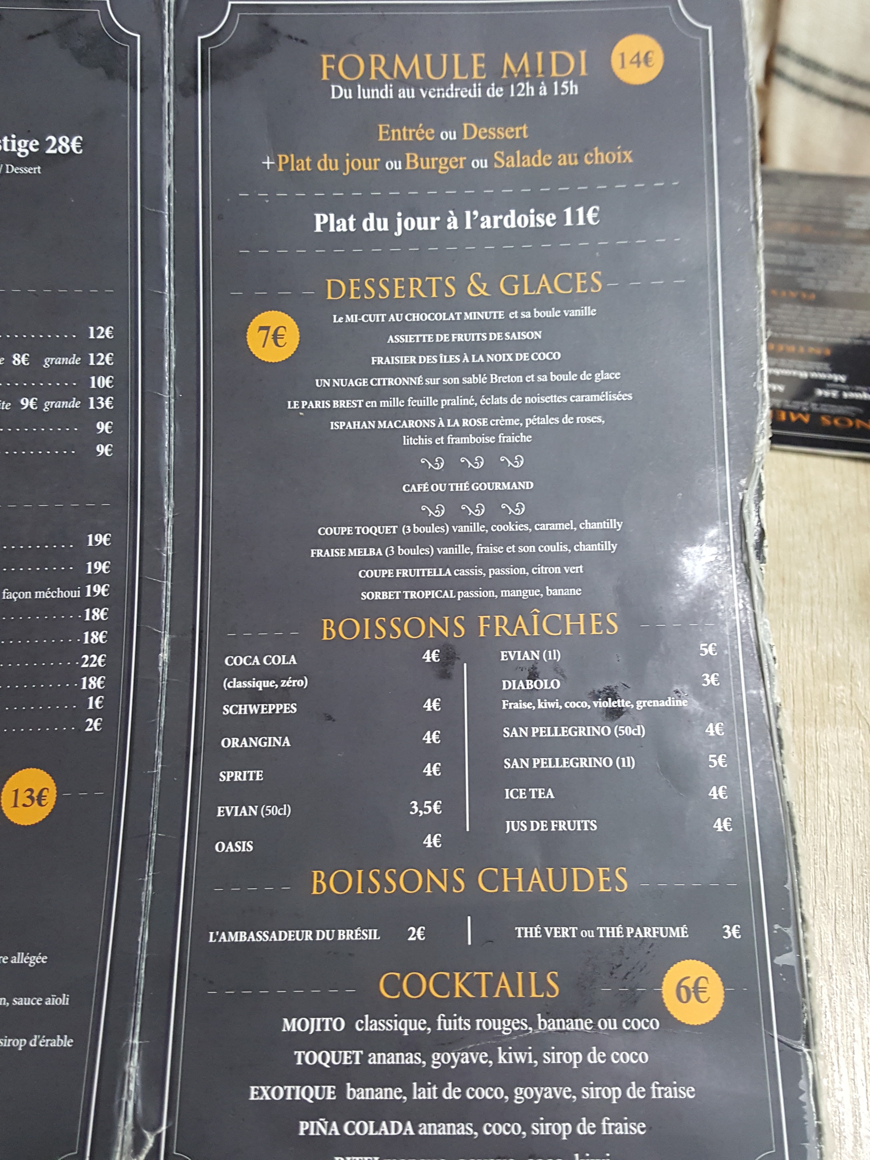 Très bonne expérience : personnel gentil, plats très bons (préférence++ pour le suprême de volaille sauce mangue/curry avec gratin dauphinois et en dessert tiramisu litchi/fève tonka), salle sympathique. Prix raisonnable : 27€/personne pour une entrée + plat ou plat + dessert. Cocktail sans alcool : 6€.