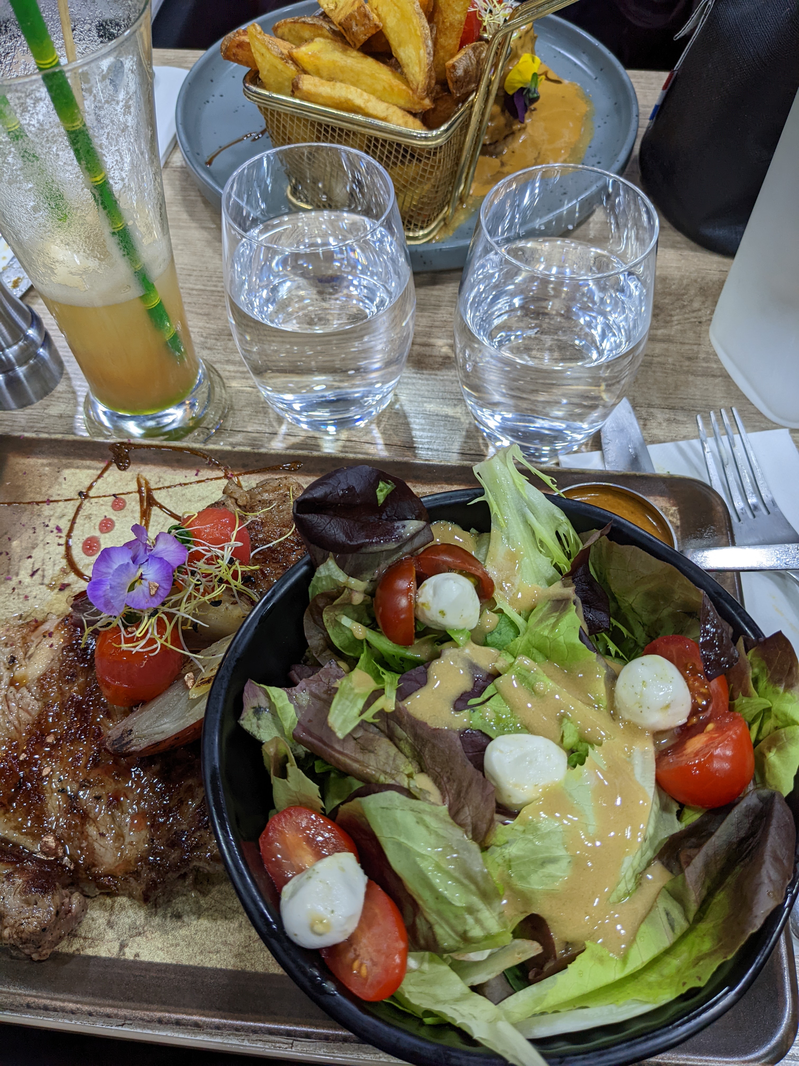 C'était très bon. Juste un couac jetait place sous la clim j'avais un peu froid mais bon. Sinon entrecôte gratin excellent ma cuisson était excellente vraiment. Le foie gras aussi. Les prix sont plutôt correct et bonne qualité.