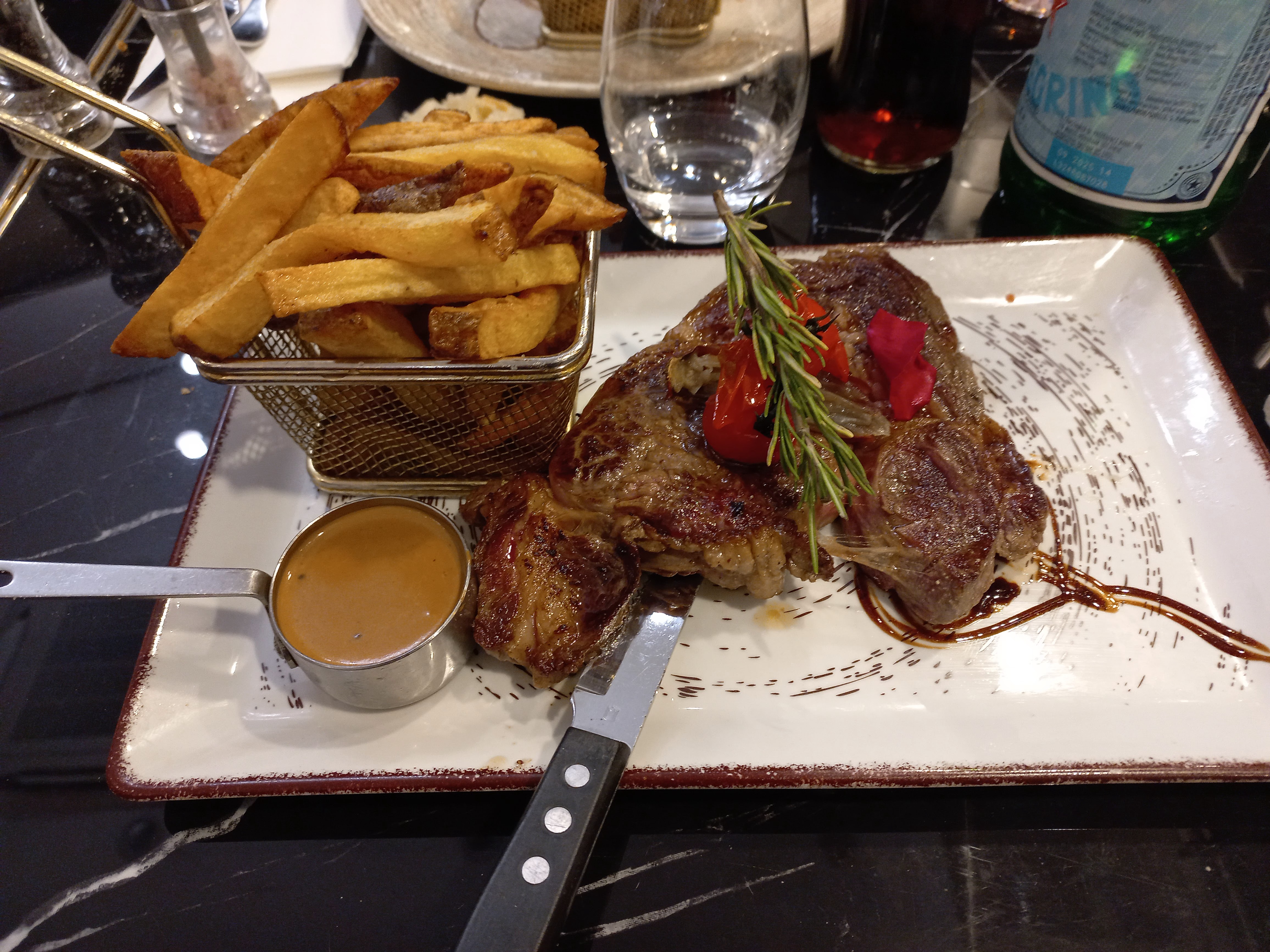 Nous avons testé ce restaurant pour l'anniversaire de mon mari. Le plus dès le départ c'est le parking qui nous ai proposé avant d'accéder au restaurant Concernant le repas la viande est juste magnifique goûteuse et vraiment bonne. Juste si la portion des pommes de terres dauphinois pouvait être un peu plus car c'était quand même léger. Les desserts étaient bons mais vraiment trop sucrés. Mais dans l'ensemble les plats étaient très bons Par contre le point faible à été le service, j'ai bien vu que tous les serveurs étaient dans le rush car le restaurant étaient complets hier soir ( 24 décembre) mais impossible d'avoir le même serveur pour s'occuper de nous ... nous avons eu 4 personnes différentes ce qui a causé pas mal d attente par moments... mais bon je recommande vivement ce restaurant 👍🏾😊